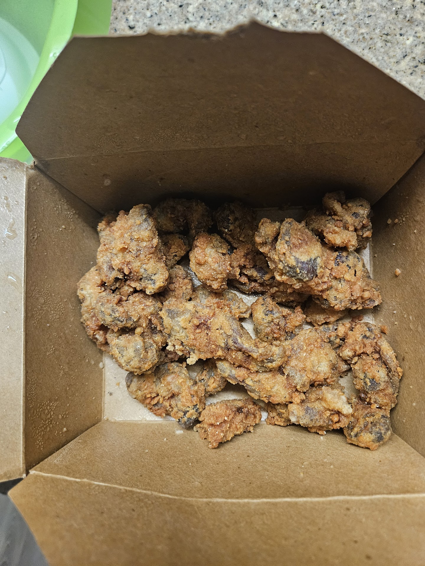 I literally couldn't control myself on the drive home because the smell of food was playing a joke on my nose. With every bit of self control I had I managed to pop just one gizzard into my mouth. Let me let you guys in on a little secret: I hated gizzards! I always found them to be super chewy and even though most people get the seasoning right, they fail at the texture. Well, let me be the first one to reveal that this place has changed my mind about gizzards! They're tender, juicy and seasoned to perfection. Now, I won't just go and order them myself, but every time my husband does I will steal a few of his.