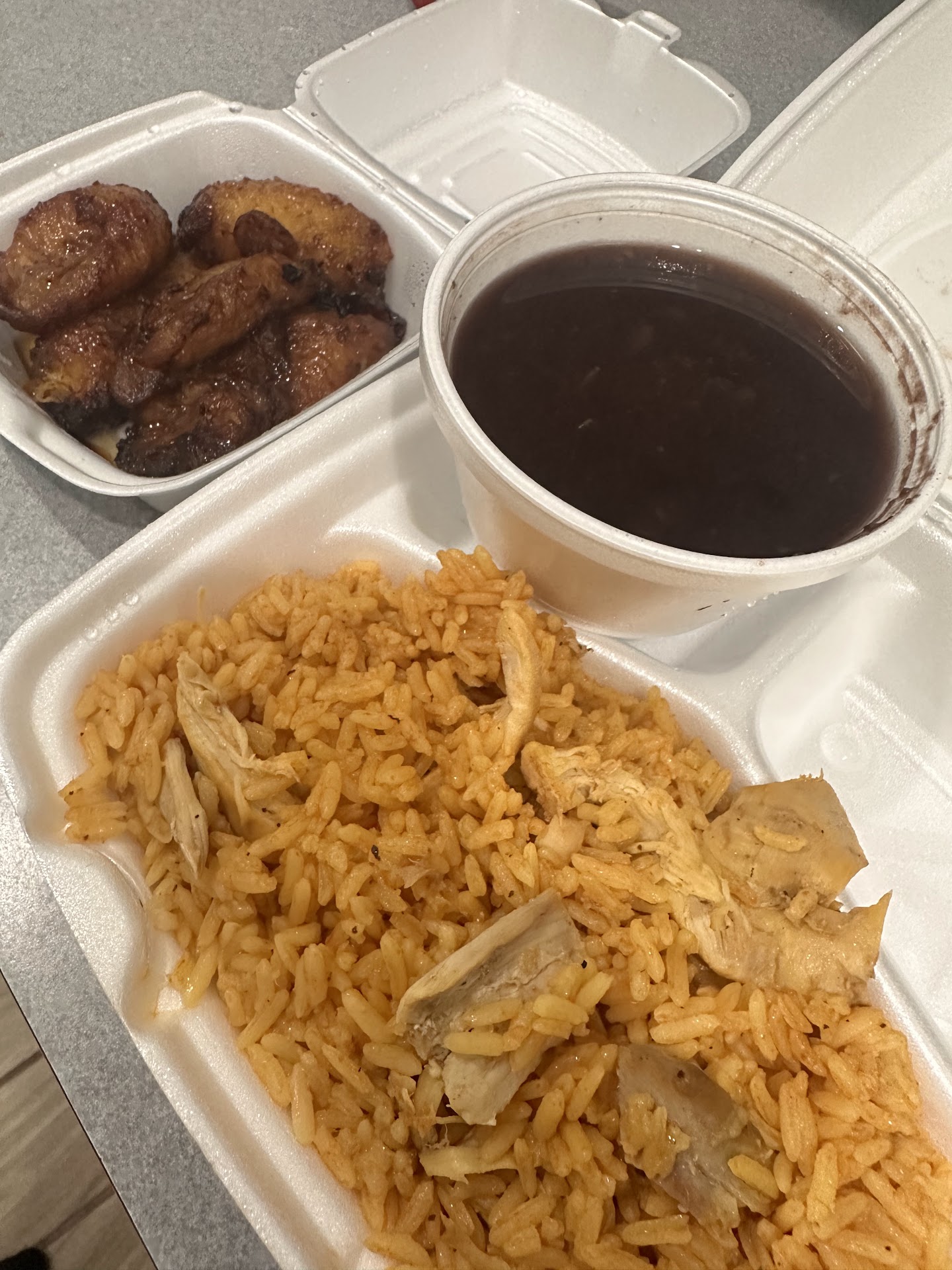 Read morePrimeramente los precios que tienen aquí en Google están incorrectos, cuando vas apagar te dicen un precio que no es. Una empanadilla pequeña es casi 3 dólares y lo más absurdo es el plato de comida, un plato de arroz con pollo casi ni tiene carne. Voy a poner una foto para que se den de cuenta que pilleria. Por un plato chiquito y una empanadilla me cobraron casi 15 Dollares. So first of all their prices have changed it's not the same prices as they show on Google. And they tell you that prices have changed once you get the bill. So then I ordered an empanada it wasn't even full size it was the small shell ones for almost $3. and then I ordered rice chicken beans and plantain for $7 and I thought it was going to be good enough for me and my other son, when I opened it this is what I found the rice barely had chicken. So the entire meal cost me nearly 15 bucks. And the food did not taste like it was worth the 15 bucks. It tasted like the day...