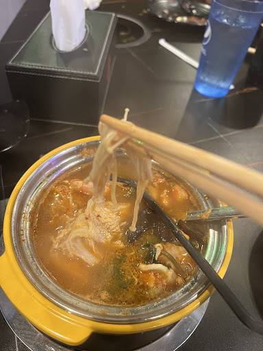 ย ย ย Read moreThe concept and atmosphere is really cool and our server was really friendly and informative on how to do everything. We did BBQ: There are a lot of options in regards to meats and they have steak. It's advertised as a really nice cut but it was very thin and when cooked it was greasy and had no taste which was really disappointing. You get one set of tongs with the expectations of using them for putting the raw meat on the grill and retrieving the cooked meat as well. Which opens you up to cross contamination which could make you very sick! I don't think a lot of people are aware of this unfortunately. So we used our plastic forks to take the meat off the grill. I tried some of their sauces to add flavor to the other meats we ate but they where flavorless as well. We did the HOTPOT the kimchi broth I had was pretty good. They also had a lot of options for the hotpot; different types of noodles and vegetables. So as far as variety goes there are a lot of things to choose from. The restaurant does have a high price point so be aware of that it was 160.00 tip included for four people which isn't the worst but just something to be mindful of that way you can make sure to be able to afford a tip. I really wanted to like it as I waited with anticipation for them to open and I love hotpot but they underdelivered in regards to taste and some of the meats where not of the best quality. As stated it's a really cool atmosphere, offers a lot of variety, our server was informative on the process. She made suggestions on things to try like grilling kimchi which was really good. Honestly the best part of our experience was our server. The lack of flavor and the sauces not offering flavor either as well as the meats being hit and miss as far as quality is a deal breaker for me. With the price point I feel that everything should be consistent...