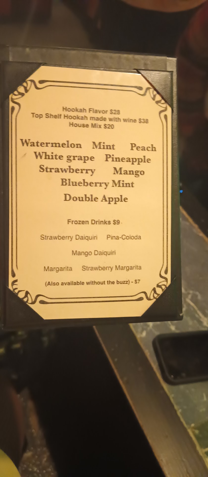 Read moreThis place is amazing. I remember the first time I went, me and a buddy had just come from a show (concert) across the steet at Evolution Records. Upon walking in, what first got my attention were the low slung semi private booths that lined the walls, very cool. Me and my buddy went to the bar in back instead and got some drinks. They were great and while we drank the owner Soloman (awesome guy) explained the Hookah process to us. Process is probably the wrong word because it's very simple. From a menu you order what kind of Shisha (flavored tobacoo) you want then decide whether you want it prepared with red wine and chilled or not. Next they bring out the Hookah and give you your own disposable plastic tip that fits onto the end of the hose. Then they place the shisha in the bowl at the top of the Hookah and fire it up. The bowl lasted about 20 minutes and was very enjoyable. After that first time I been back on two seperate dates and enjoyed "sitting" in the booths. Both dates occured on a Friday or Saturday night when they also have belly dancing taking place down the center stretch, along side the booths. The dancing was amazing and provided that extra something that makes a night special. If you want to have a dull, uneventfull evening or you want to take someone someplace to break some bad news then don't go here. The Hookah palace is nothing but fun and enjoyment. Oh, did I mention the very...