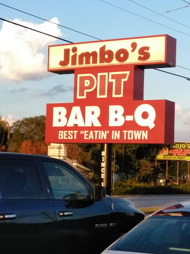 Read moreIt took a while to work up the courage to try this place. From the street it looks, well...meh. it's by no means a dump, but it doesn't look like anything special. But it's been around a long time, so I gave it a try. The dining room is on the smaller side with beautiful rustic wooden tables and benches. The walls and windowsills are loaded with pig-themed knick knacks, historical things and other conversation pieces likely accumulated purposefully and kept free of dust and cobwebs. Sit where you like, no pretenses here. It doesn't take long to realize this is a local favorite. The waitress seemed to know everyone in the room, giving it the feel of a big family get-together, unrushed and familiar. The food did not disappoint, nor has it in multiple return visits. Not once has it been dried out or overcooked. I think it could use a little more seasoning rubbed in but I like barbecue strong enough to still have the taste in my mouth an hour later, so don't go by that. They start you with some tasty pickle slices that are the perfect palate prep for the generous portions to follow. They made me fall in love with hush puppies all over again and their sweet tea will make any self-respecting southerner ask for a refill. So having become a regular, the only thing I can't figure out is why there's an hour wait to get into the chain restaurants but you can walk right in and sit right down most of the time at Jimbo's? Aw, don't be scared, it's a nice place with nice folk and great barbeque! It's a bit of a throwback to old Florida, so be sure to mind...