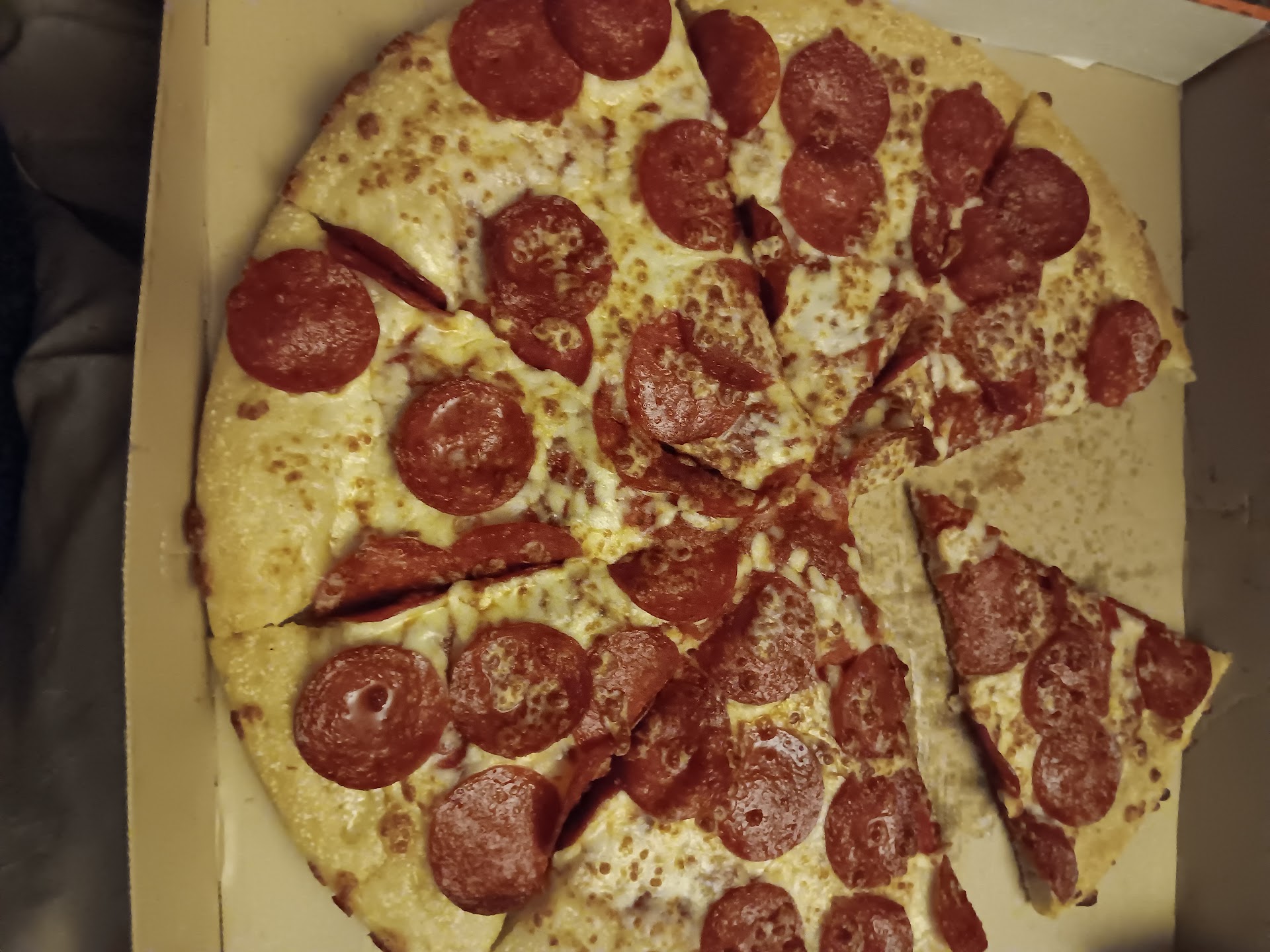 Read moreWe ordered 2 pepperoni pizzas and Italian cheesebread and waited 30 minutes! when asking about our food the cashier got really rude and then told me I wasn't allowed to have my service animal. I told her she could give me my food and I wouldn't be there at all and that I find it hard to believe I wasn't allowed my service animal. She continued to be rude and said she was going to get the manager so I said, please do. Manager came out and said no service animals allowed as per the GM- I again restated that I find that very hard to believe since it's a federal law. I got the regional supervisor on the phone who confirmed what I already knew that I am allowed my service animal and he had no idea why they would say that. To make matters worse the manager in the store was trying to tell me to "scoot my chair over" about a foot so I would be sitting in the corner, when I was already in the chair at the farthest end of the store, then he stood there waiting as if I was going to move the chair down! I asked if he could just get my food so I could leave. Other customers were waiting just to order food while the girl was busy talking with friends. A lady came in about 20 minutes after us and ordered the exact same thing and they gave it right to her! Noone in the store even bothered to apologize for the long delay in our food! Worst customer service experience...