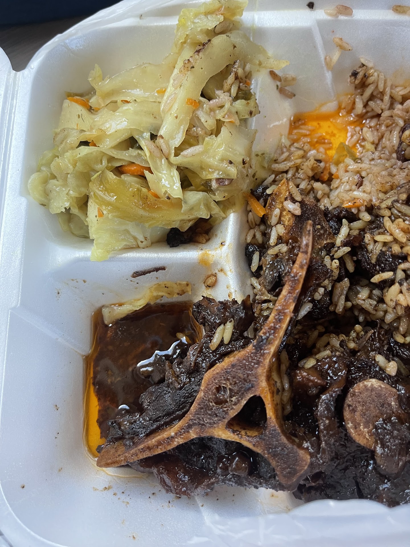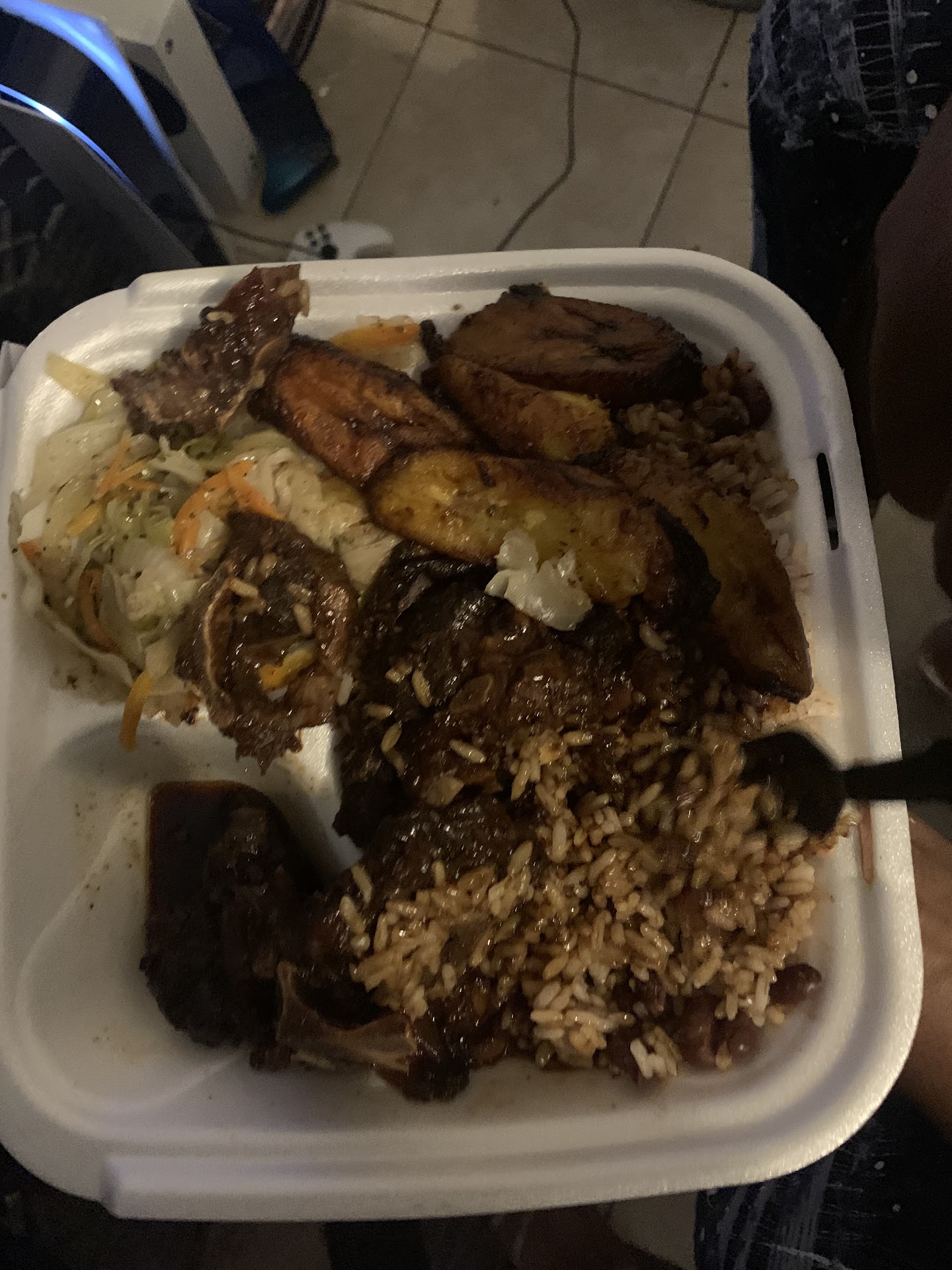 Read moreFound this place tonight just as they were closing! They were nice enough to let my son and I in. I asked for the Oxtails, cabbage, rice and beans and within maybe 60 seconds give or take a few seconds and my order was ready and hot!!!!! 1st time customer hoping to join the family now! Great plate of food for less than 20 dollars. Highly recommended all the way. Parking can be an issue due to surrounding businesses and lot behind plaza has limited spaces but because they are located on the end of the plaze, the tire shop parking lot (respectfully) is an option or pull along...