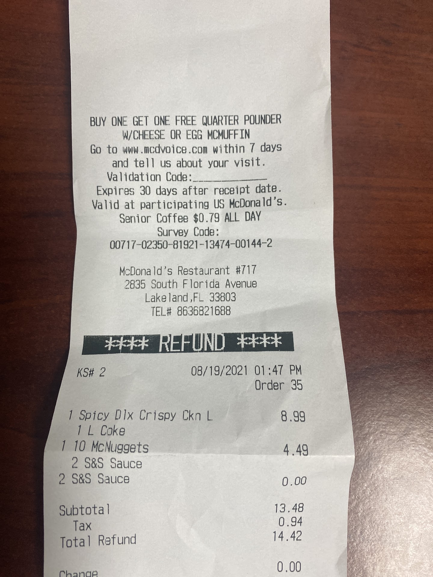 Read moreThis McDonaldâs doesnât even deserve a star. My name is Zariah, a regular customer of McDonaldâs. I came to this McDonaldâs about 10:40 pm or so on 02/07. At the mic I requested a hot tea and apple slices. I pay for my items. I did not receive a receipt. Approached 2nd window, the guy was about to hand me a cold tea. I said I asked for a hot tea, I even said I would pay the difference after he told me thatâs not what I ordered also said thatâs not whatâs on the screen. He went further saying he didnât even they had hot tea. He asked the manager sheâs asking him what she saying. In the midst I told the guy Iâm not feeling well and I wanted a hot tea and I would pay the difference. No one was hearing manager approaches saying I didnât order that and I have an attitude mind u I was upset yes but because of how the situation was handled, she wasnât trying to satisfy the customer nor understand the problem and try to fix it. I didnât realize this is how McDonaldâs is ran in LAKELAND. Terrible service I requested a refund. She refunds the tea. When I wanted a total refund so I drove. Off. The guy at the window also kept saying heâs new here so thx McDonaldâs. My night is just worse cuz no where...