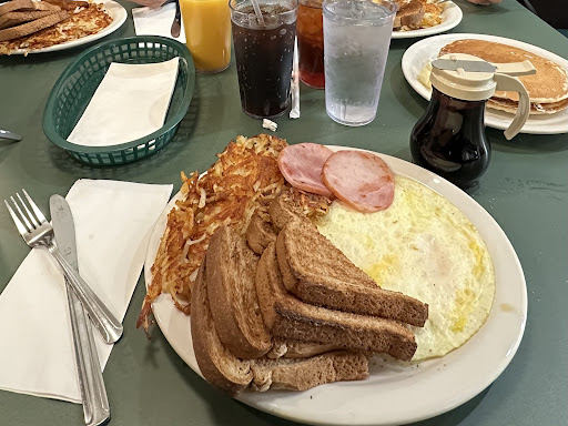 Read moreUnfortunately I can’t rate the food because we never had a server 12-15 minutes after being seated, so we left. We were very interested in checking out the diner but came away very unimpressed. It was Sunday morning and they were busy, the hostess told us it would be about 20 minutes for a table, but we could be seated immediately at the counter, which was empty. We chose the counter and the hostess seated us. During the duration of sitting at the counter it was obnoxiously loud, particularly the person we assumed to be the manager. He was a bald gentleman with glasses who non stop was yelling back to the kitchen staff about orders. While he was busy yelling at one of the cooks to “hurry up” an order of strawberry pancakes (not sure how the cook is supposed to make the grill cook them faster, but that’s just my opinion), we watched another cook use his hands to scoop scrambled eggs out of the pan directly onto a plate to be served. He was wearing blue gloves, but had also touched several containers and grabbed a filthy towel to wipe down his prep counter with the same gloves on prior to touching the eggs. After about 12-15 minutes as the only customers at the counter, another couple was seated at the counter next to us and within 30 seconds a waitress came to them to get their drink order, as she started to walk away we got her attention and let her know we had been there for a long period of time with no service, she responded, sorry your not in my section and walked away. All of this occurring within 3 feet of the manager, still there barking at the kitchen non stop. Food may be fantastic, but we didn’t stay to find out and...