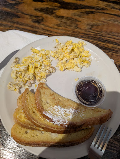 During the second visit, we arrived earlier in the morning (about 45 minutes after they opened), ordered 2 drinks and 1 French toast plate with scrambled eggs and bacon. Inside there was one barista behind the counter, one customer in front of us and one customer after us. The customer after us got her hot drink before we received ours, but we rationally thought maybe it was faster to make that hot drink than ours (one was a frozen coffee and one was iced). We waited for 20 minutes before the plate showed up. Somehow the barista fumbled the plate just prior to setting it down on the table and the food dropped to the floor. She said, "I guess that food wasn't meant for you" which we chuckled and said it happens. My husband promptly grabbed handfuls of napkins help pick up the food from the floor and we continued to wait. After another 15 minutes she came back out with the food. My husband had to remind her that we were still waiting on drinks. We could understand the delays if Mitchell's was bustling at this time, but there wasn't anybody else waiting. We have worked in the food industry for some time so I don't want this review to sound like some entitled person who's never worked in the service industry, but Mitchell's customer service is exceptionally poor. At no point during that wait or when the food was dropped did the barista apologize once. We only got a weak self-deprecating joke and that was it. If that wasn't bad enough, the food wasn't worth waiting for either. You're much better off scrambling eggs at home or going to another breakfast establishment if you want food.