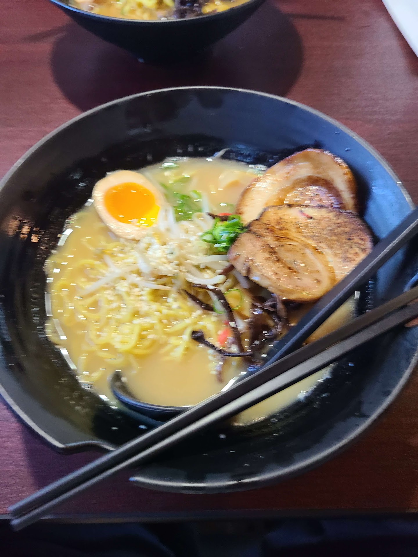 The food: The appetizers we went for were the steamed gyoza and the takoyaki. The Gyoza felt like I was eating them for the first time, yet I’ve tried them at several other restaurants. I loved these and almost considered just eating only these in mass quantities they were so good. The Takoyaki was a stretch as I never considered eating them or even knew they existed for that matter. But I gotta say, after eating just a few of them I knew these would be a favorite of mine. Don't let the octopus part scare you, this reminded me of eating hush puppies with a very savory sauce and meat. THE RAMEN, I ordered the tonkotsu pork ramen! First time ordering it and I never go for the pork ramen, I’m more of a chicken guy myself. The portions were perfect and I felt full after eating this. The flavor as expected was amazing and I’m considering trying the black garlic version after trying this one. I would also ask for more marinated egg as these just tasted perfect. I’d like to see more chicken styled bowls, but the ones they have would definitely suffice. This is your chance to experiment and ask for different ingredients or ask for recommendations! I also got a drink to-go, which they have a huge variety of yogurt, milk and punch type teas with boba or aloe!