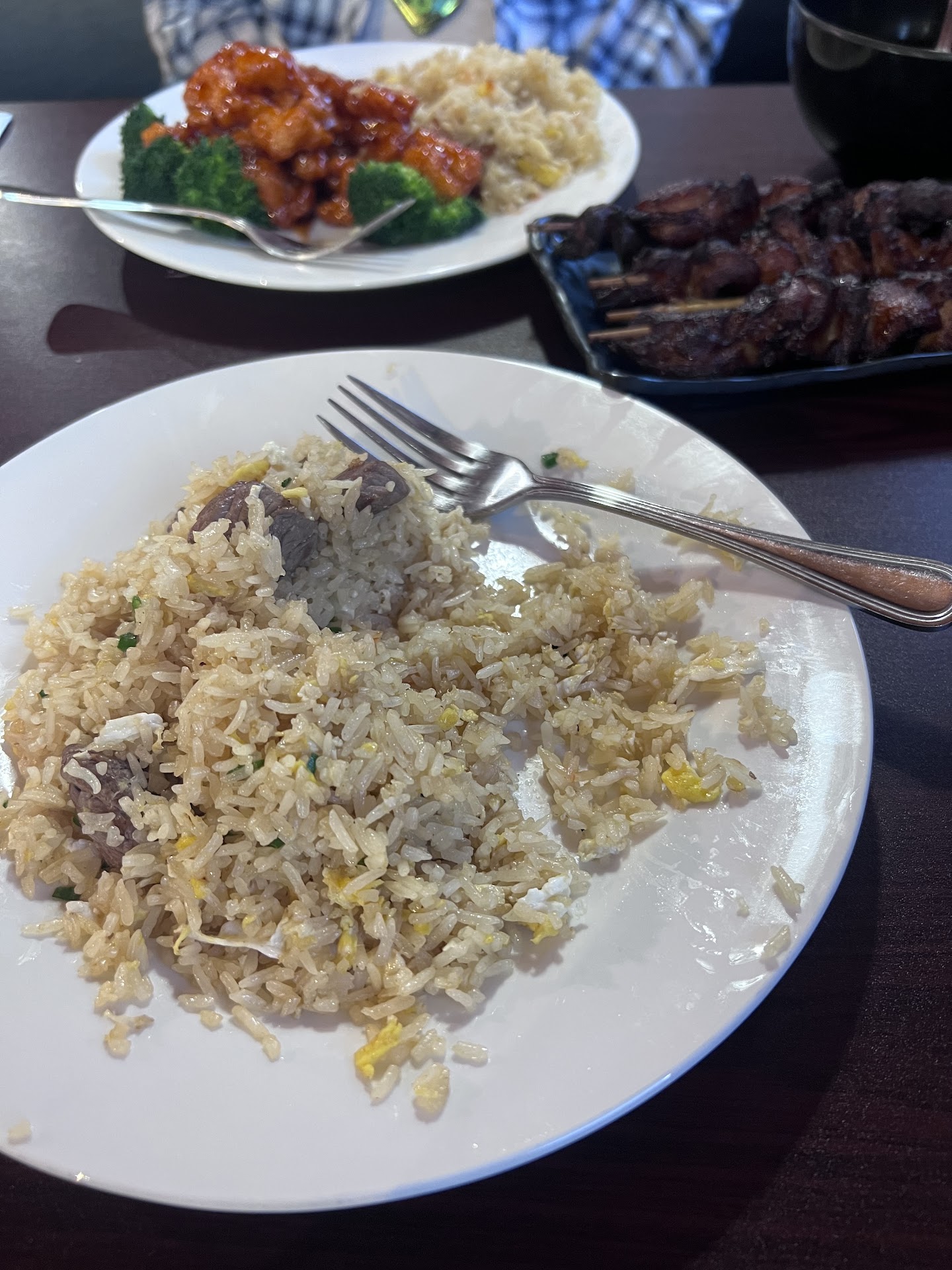 My steak fried rice came, while my wife enjoyed her salad and soup, and it too was hot…no warming lamp warmness here! The plate was plentiful, with small chunks of tender steak throughout, along with some finely cut vegetables. Rice and steak were both cooked perfectly.