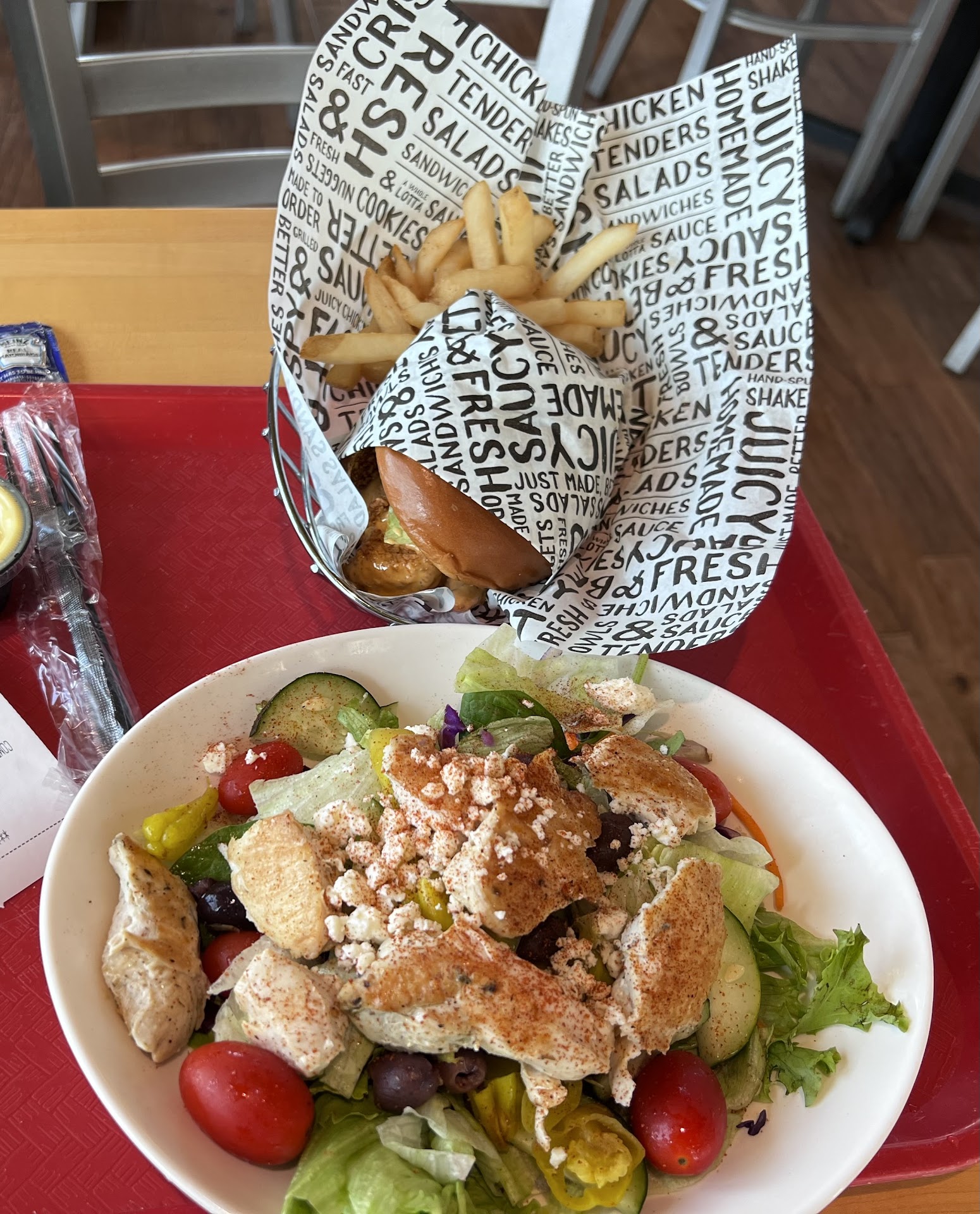 My husband and I had lunch there this afternoon. The cashier was friendly and accommodating when it came to the order and what I asked for on the salad - thank you.😊 Festive environment- holiday decor …. Felt great coming into to a bright and airy fast food restaurant that had a beautifully decorated tree and holiday music😊 The young man that brought over the food was friendly and polite - something that is so needed these days. The food was great - loved my mediterranean salad. Even the presentation of salad was great. My husband loved his burger. 😊 Grateful for the hand washing station and the young man walking around making sure all the tables were clean. Time well spent šŸ‘ŒšŸ½