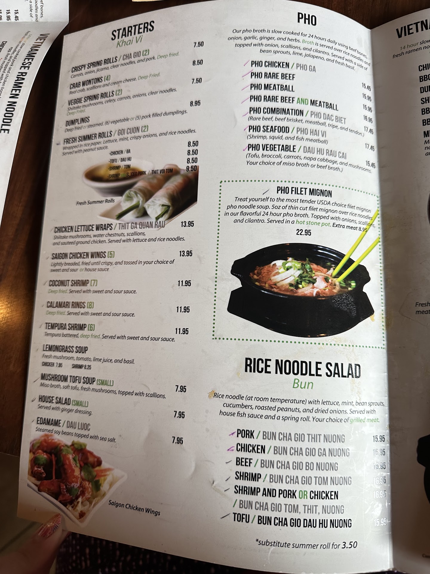 I ordered saigon bistro through postmates. I had never eaten there before. I ordered 2 beef pho, an order of spring rolls, and an order of dumplings. I was charged over $7.00 for what turned out to be 4 dumplings... FOUR!!! i also paid over $5 for 2 spring rolls roughly the size of my index finger. All the pho ingredients were packaged separately, from the broth, but the broth was not hot enough to heat the ingredients up. the beef, described as "rare" on the menu, was in fact 100% raw. This is a bit of a problem when the broth isnt hot enough to bring the meat up to a safe temperature to consume. I understand that the food being cold may not have been their fault, seeing as how it was delivered, but i live pretty close, and if they cant make sure their pho is gonna be safe to eat when the customer gets it, they probably shouldnt offer it as a delivery item. I called to complain about the portion size of the spring rolls and the dumplings, and the girl on the phone couldnt have cared less. she defended the restaurant by stating that the restaurant only charges like $6 something for the dumplings and postmates gets the rest, which is possible but unlikely, since none of their competition operates that way. Usually, restaurants are told they can increase the price for menu items to help compensate for the flat percentage taken by the delivery service. Either way, her argument was ridiculous. even at $6 something, thats still over $1.50 PER DUMPLING! the quantity per order is listed nowhere on the menu, and the girl on the phone suggested that I was at fault for "buying something that I didnt know what i was getting" . What reasonable person would expect to get only 4 dumplings when they're priced north of $7? There wasnt anything particularly different about the dumplings compared to anywhere else i've seen them. They werent any bigger than any other dumpling ive had I didnt eat them, but i cant imagine the flavor would have justified the price. same goes for the $2.00+ spring rolls. whoever prices these menu items either thinks that nobody knows how much ingredients cost, or how to REASONABLY mark up their items. The customer service was just as bad. The girl on the phone had no business fielding customer complaints, and she told me as such AFTER i had been complaining to her for a couple minutes. I told her why I was calling and she just let me start telling her what my problem was, only to tell me there was nothing she could do about it because she didnt make the prices (exactly what every upset customer wants to hear.) I asked her why she was answering the phone and she said that shes the one who takes the call in orders... Fair enough, but when a customer calls to complain about their experience, you hand the phone to someone who is capable of at least pretending to be sympathetic. She did eventually hand me off to someone else. I have no idea who it was because she didnt tell me she was doing it. I told the mystery person the issue with my experience and the guy basically said that they charge what they charge and they have NEVER had a complaint in 7 years, which is impossible. No business will ever have 100% satisfaction. Thats just not possible. Ive worked in customer service long enough to know that. I get that the girl and maybe even mystery man cant control the pricing, but they can absolutely control the situation. Unfortunately, there must not have been anyone there who knows how to interact with an upset customer, and with no resolution, I'm stuck here making sure that everyone else knows where to set their expectations when doing business with saigon bistro. I cant speak to the flavor of the food, as i am going to make sure i get a refund from postmates, and out of principle Im not gonna eat a meal I'm requesting my money back for. I have half a mind to drive the food back to the restaurant and leave it by their front door so they cant throw it out. 0/5 would...