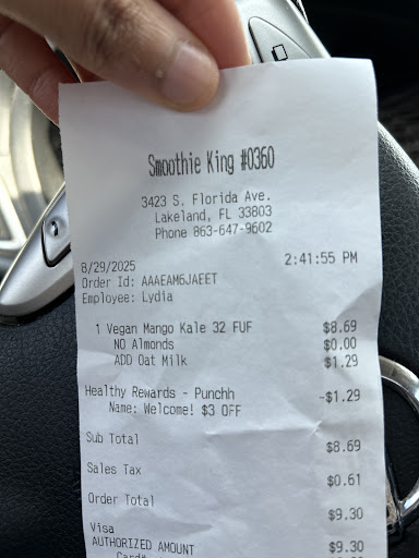 Smoothie King on S lakeland FL,33803 robbed me and my husband!!! I'm only leaving one start because I had to in order to write the post. My husband purchased a 100$ gift card for me using his credit card on 8/30/2024.The very next day I went on my smoothie king app to order me a smoothie and when I put in my GC number it kept saying certificate cancelled and I don't know what that means at all.I work right next door to smoothie king and go there almost every day to get a smoothie hence the reason my husband just got me a GC.I go into work on 9/2/2024 and stop my smoothie king to buy a smoothie with the intention to use my GC to pay and once I get up to the register it took about 3 of the employees to try and ring me up using the GC saying that It's not working for some reason and did I have the receipt.I did not because I wasn't the one who purchased it,So I waited on my husband to get his bank statement and we went back up there to show them we did purchase the GC and they looked me right in my face and said well we don't have ownership of the GC's and that they come from another company so that I have to call corporate and get them to give me my money back!.I found that highly unacceptable they literally took 100$ off of my credit card and then the manager FLAT OUT REFUSED to help me in anyway shape or form.Compensated me for nothing.But here is where is get's better my husband's bank told him because it was a GC and he purchased it himself and it wasn't a mistake that they were not going to dispute the charges either!!! He finally told me that it looks like were trying to do something fraudulent because Smoothie King never informed anyone that we never got the funds on the card.So in the end the store manager of the Smoothie King refused to help,The bank refused to help and The police said we need to take them to court because it's a civil matter and they don't handle that.Needless to say that way a major disappointment to say the least and I will never...