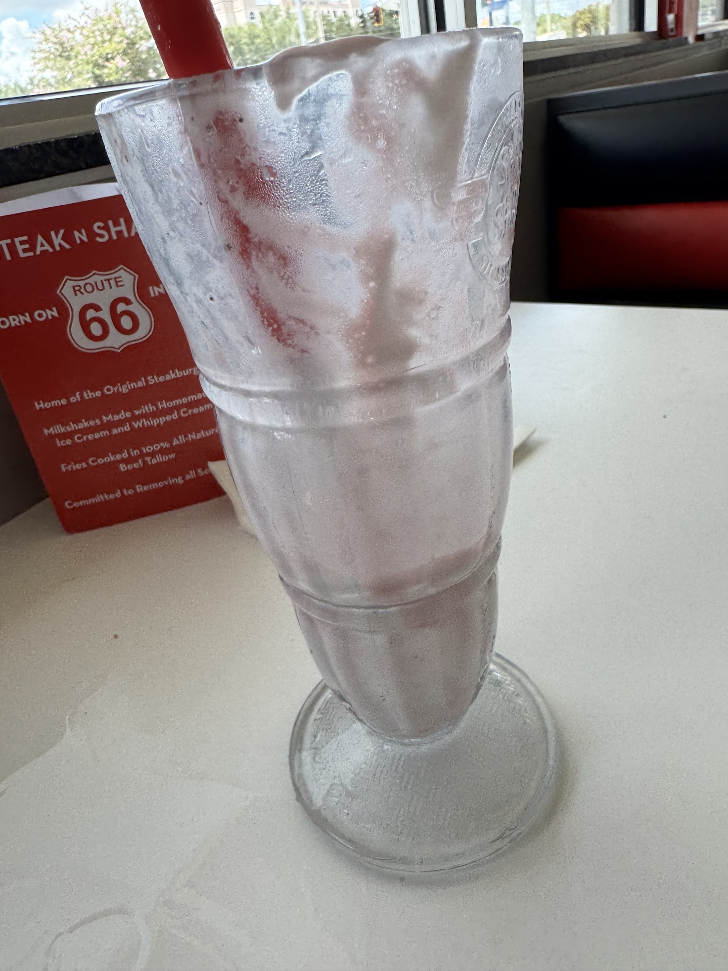 Read moreI will never go to a steak and shake again the only good thing about it was their milkshakes because they’re $2.34 but I got a tender meal and my grandpa got a burger with fries. During the order process there were no option to have the fries made without salt which my grandad needed because he can’t have a lot of sodium. Also at the end it asked for a tip for the “managers” and there wasn’t an option to not tip so I tipped 0.01. There were no cashiers or waiters you order at self check out and sit down at a table then wait for your number and name to be called so you can go get it. They call it over the whole restaurant with a microphone and they say “freshly made food” at the end every time. I’m not even sure that it’s fresh because when my meal came out the chicken tenders barely tasted like chicken and my grandads burger was dry and smothered in ketchup. I honestly think this place should go out of business because there’s no real point in saving it the food is mid and the restaurant felt cold. They have a drive thru so it’s basically like a fast food place with no waiters or anyone to help the experience feel more meaning full. I remember when I would come as a little kid and it used to be fun now it just feels like an empty restaurant, which it kinda was there was no one there. Just for 4 tenders 2 small fries 1 fountain drink and 1 milk shake it was 21.59 including my 0.01 tip that’s absolutely crazy and for the food to not even taste good to the point where you don’t finish it. At the end a “waiter” came and took our plates to throw away but really what was even the point of it if she’s just going to walk around and look at tables instead of taking our order at the cash register or bringing...