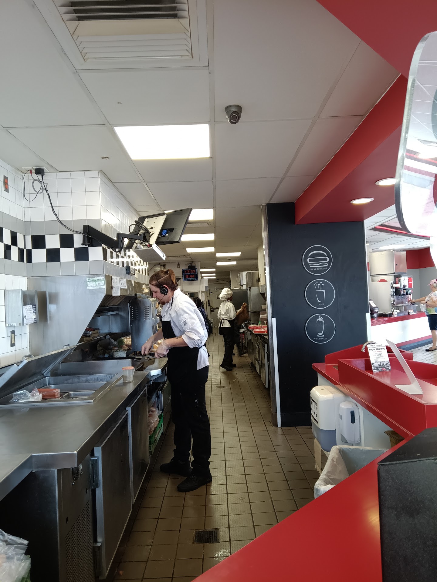 Let’s begin with my first step into the store. No greeter anymore, to take us to a table? Oh well. There was a lady, possibly the manager at the pay counter who not only didn’t greet us, but literally pay no attention to us, she was having too much of a fun conversation with another customer. So I was the one who have to figure out that there were no cashiers anymore, and it was all a “pay yourself” terminal style. So we ordered. I was hoping that at least the food was unchamged, but no. No more serving at the table, no; you need to listen for your number now. While I waited, I saw a few things, the most annoying part was the “characters” in the kitchen, coming in and out. Some where better than others, but one of them has the dirtiest uniform I’ve ever seen at a Steak n Shake. Sad.
