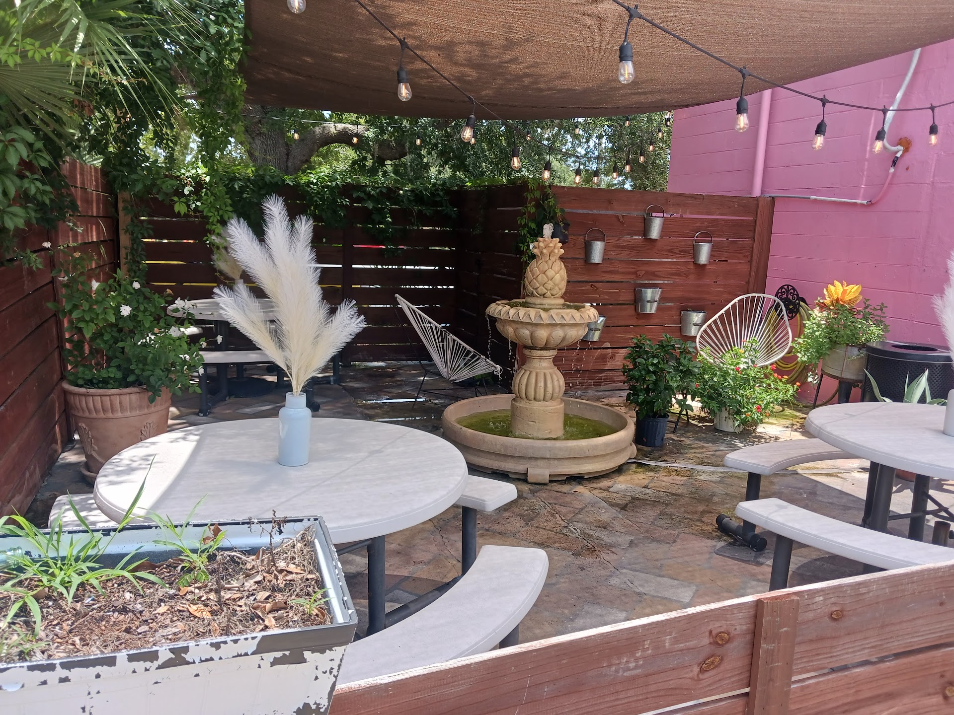 Interior: The interior has a counter when you first walk in, the decor is warm and inviting and, paired with the tables, you could be forgiven for thinking you were in someone's home, sitting at the kitchen table. Where it gets VERY cool, imo, is the outside seating, which looks like a courtyard, complete with a beautiful water fountain in the center, and shade to protect you from the sun I was with 2 other adults and 2 children, and we were all able to sit comfortably at one of the round tables.