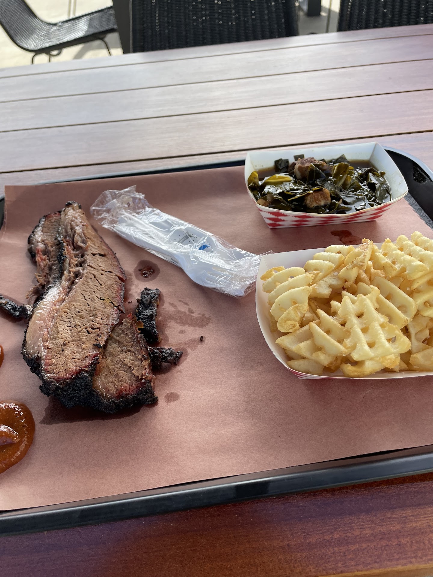 I was drawn to the window at the Catapault building, Main Street, next to the Joinery, because of the slow cooker in the driveway. Both owners were there and I began to ask them what they were smoking. They explained that they were smoking the pastrami, which they had been preparing for 2 weeks. They only sold the pastrami on Thursdays because of their process. So, I went back the next day and purchased the slices of pastrami, with 2 sides. The pastrami, which fell apart with just the fork, rivaled the best in NYC! It's a bit pricey, but definitely worth it! Highly recommended by this...