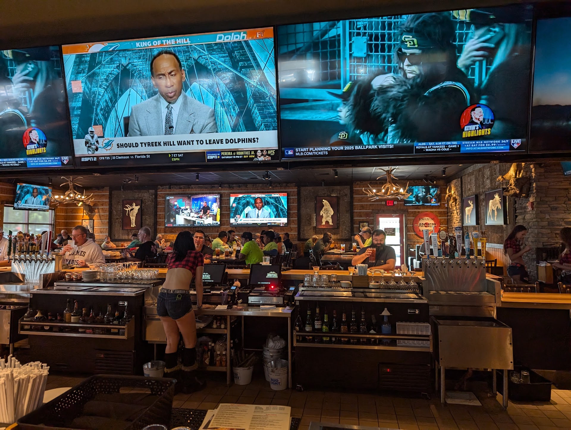 4th visit 19 Oct. '24 Well todays visit started off with a different look to some of the servers.While some wore the traditional , plaid button up shirts and denim shorts, others wore a crop top plaid jersey and black shorts. Service and food were great again , I was taken care of by a young lady named Keezy, she was polite, and very professional. I had the SpicyThai ribs as an appetizer and the spicy meatball sandwich Casper the Ghost
