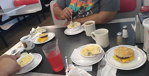 Read moreI have came in for a late night breakfast twice this. The first time I got very quick service but I didn't get all of my food. I ordered a additional side of toast and didn't get it. I ordered my waffle with chocolate chips and it came plain, and there was 1 other thing I didn't get and I can't remember. But the service was good so I didn't complain and I still tipped and I thanked the waitress and the cook for the good food. Tonight I came back and I got very fast service and I ordered a patty melt with has browns a side add on side of grits, coffee, and a glass of ice water. I got the food very prompt time. That part was really good it came out quick. But it was a bacon egg and cheese sandwich hash browns and coffee. And that was it. So I eat the wrong food and it was good. However it was not even close to what I ordered. I ate it because I have learned that you never say anything negative about the food or service until after your done eating if at all possible. Lol. I did not even complain about it to the young lady when I checked out. That's not me, if I can't say something nice to you I choose not to say anything. Life is to short to have any unnecessary negative vibes. Also when I was ready to leave I asked for my check and a small to go box. About 10 minutes later I finally just got up and went to the cash register and I got the other waitress to check me out. Once again both nights the food I got was good and it was...