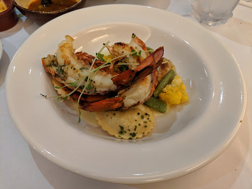 Not a very good dining experience for our party of six. While the bread rolls were hot and tasty, no traditional plate of spices was presented for the accompanying olive oil and basalmic. The Caesar salad likely used bottled dressing which was neither good nor authentic. The salmon platter was cold, flavorless and returned to the kitchen in favor of something hot and more flavorful. Three filets were served tepid and accompanied by a mushroom ravioli that only one of the party enjoyed. The sole ribeye was served cool and not properly seared (the fat was not caramelized). Lastly, the "patio" area in which we were seated was an echo chamber in which patrons were pummeled with Italian tenors at volumes that made casual conversation difficult if not impossible.