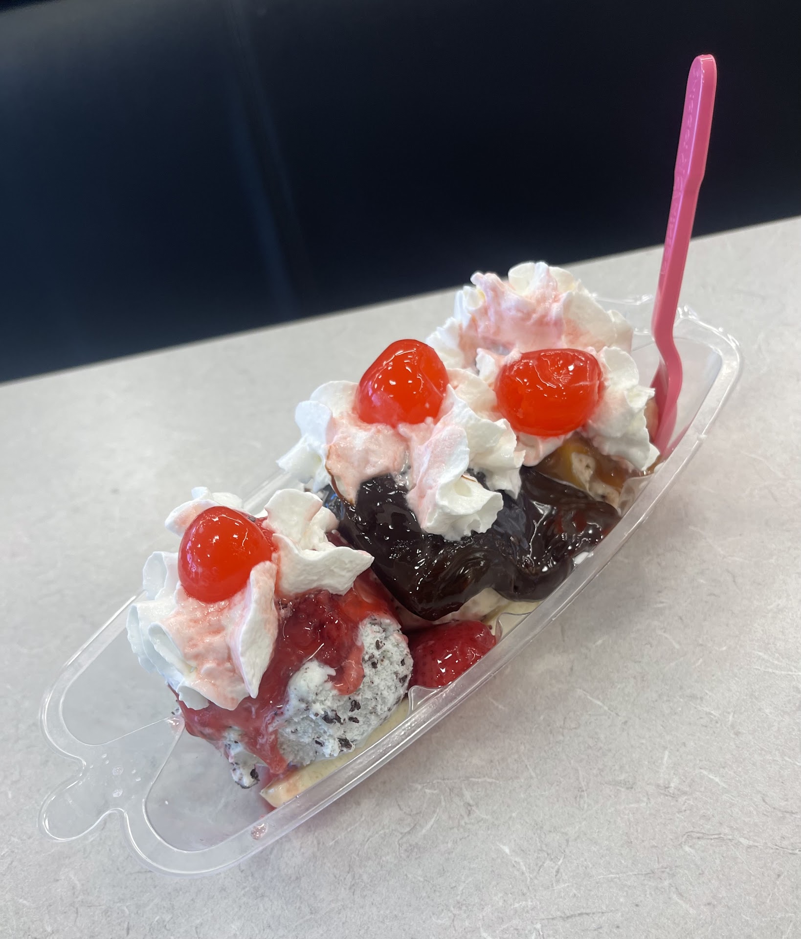 Read moreI'd never been to a Baskin Robbins and was excited to try it. The menu listed online and menu here are not the same despite the same names, or employees maybe just don't know what they're doing. I ordered a Banana Royale sundae, which online is listed as your choice of ice cream with caramel praline topping, banana slices, whipped cream and chopped almonds. I got no choice of flavor, banana, and chocolate sauce. For being excited to finally try Baskin Robbins, I'm disappointed and will continue getting ice...
