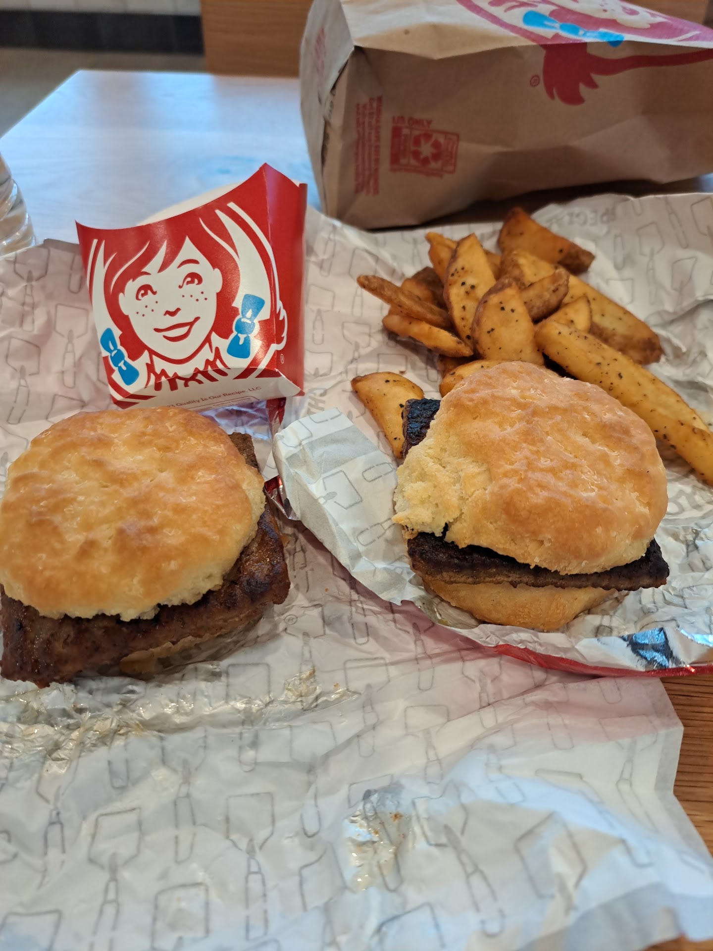 Read moreThe last review of Wendy's: I go through my local wendy's drivethrough occasionally, and allways get a burger with limp lettuce, slimy onions, and disgusting pickles. its been drowned in mayonnaise or some other sauce, ketchup or mustard, depending on whatever broken portioning tool they use. My frenchfries are cold because they have sat for over three hours waiting for a customer to buy them, not getting cycled for fresh product as they should be.