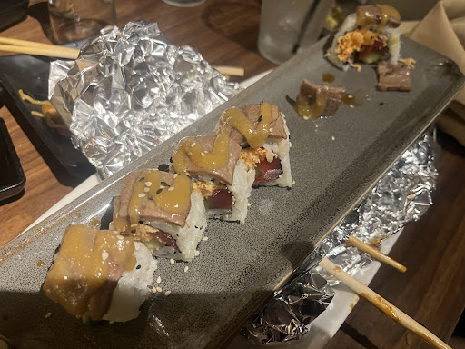 Read moreVery small dining area. First time at this sushi restaurant to meet up with a friend to catch up. Arrived at 7pm on a very cold and damp night. Hostess wanted to seat us at a table literally right by the door at the entrance. Every time the door opened a wet cold breeze would have hit us. No thank you. There were at least 7 other tables to choose from. I politely asked for another table away from the door. She then set up in a cozy nook by the bar. I then needed to use the restroom and was dismayed to find that there was only 1 for Females and 1 for Males and of course the Female's was occupied. Waited for about 4 minutes and a waitress from the restaurant finally came out. Back at the table we enjoyed our appetizer and ordered 2 delicious sushi rolls to share. The Steiner Ranch was our favorite. As we were deciding on what roll to order next, our waiter appeared and asked if we'd like dessert. When we told him we were going to order another roll, he said "ok, but then I'm going to bring you your bill because my shift is ending." Ummm, what?? It was now around 7:50p. Ohhhhkay. We finished our roll and drinks and another waitress made sure our water glasses were filled. Before leaving we both needed to use the ladies room before going home. My friend went first and after 5 minutes of waiting, used the mens restroom! I then got up and waited another 3-4 minutes and lo and behold another waitress came out with her phone in her hand and it was still on. Apparently she was taking a 10 minute phone break in the only ladies restroom they had.đ Nice little place but I will...