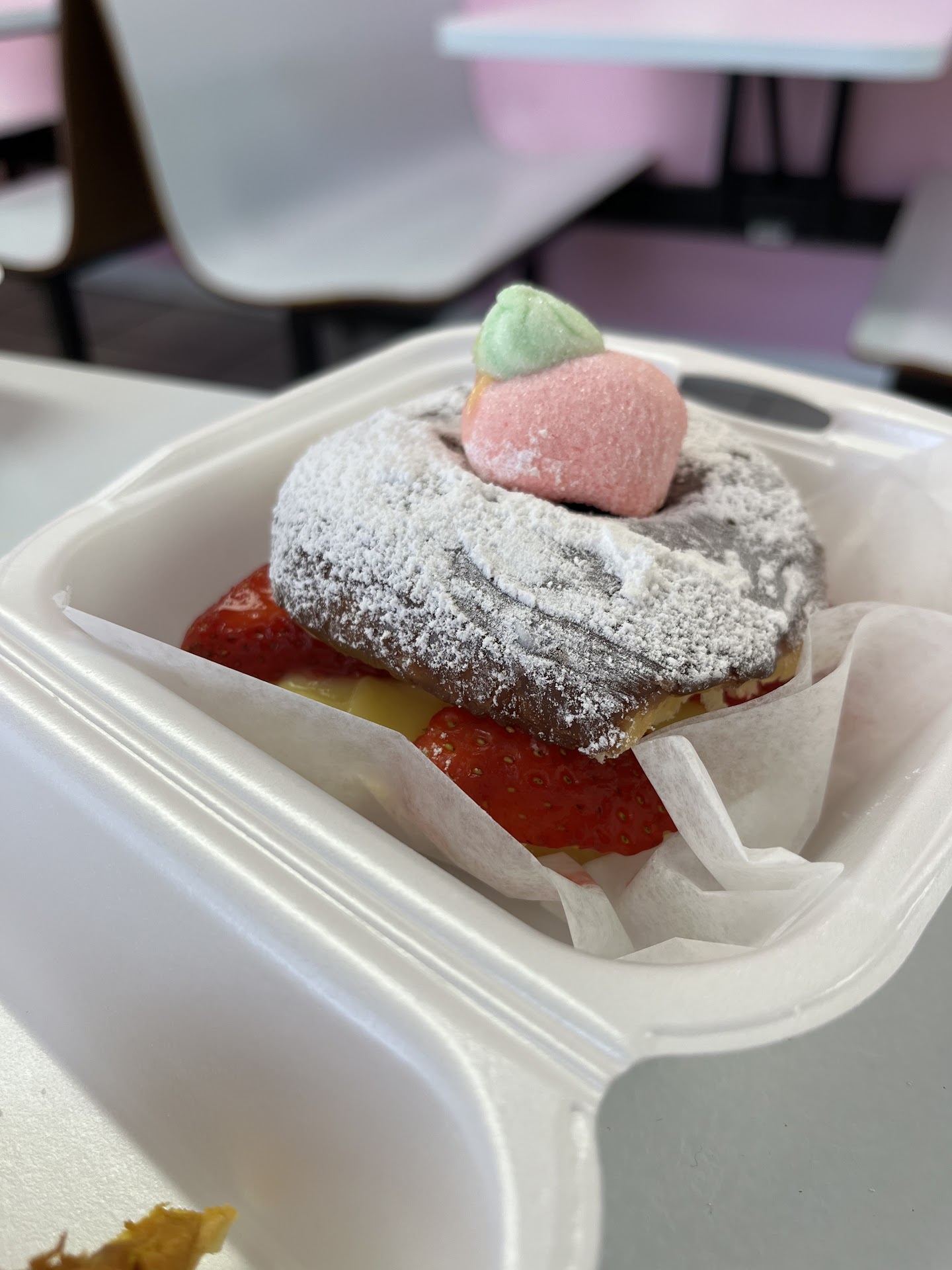 While the interior looks like your basic small town donut place, the donuts taste a lot better than those. Just trying one donut hole told me the difference. Most places seem to use the same batter but this place makes them taste like vanilla. We wanted to try almost all the donuts and while we were picking through them, the worker did everything with a smile while also simultaneously working the drive thru. She bounced around and never showed discomfort and annoyance. She was happy to add filling to some which made her have to also run to the back and back to the front. It was nice to see they also have gluten free on certain days. When we were done, she had another big smile while saying thank you for coming by. Nothing spectacular inside but no one cares. The coffee is by Coffee Traders by the way. Iāve heard of rave reviews for them. My blueberry cake donut was basic but still loved it and my kids loved the themed donuts. They also do the gourmet types with various cereals. Nice and fast workers, clean store, and...