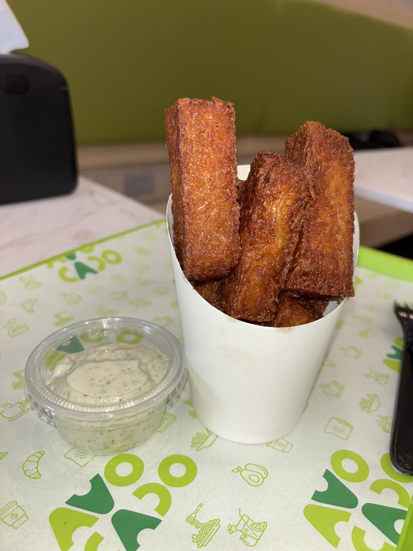 I recently went to lunch at Avocado Café in Lakewood, NJ. It is located in Seagull Square. I have heard a lot about the place, but have never been. I must say that I was pleasantly surprised at the open and modern design of the cafe. After browsing their menu, we settled on two dishes, two sides and two drinks. We are very well versed with Shaksuka. We have tasted it in many a restaurant, whether in a cast iron skillet or hot pan. However, we have never seen a Shakshuka Sandwich. We ordered it in a baguette (we were asked if we wanted whole wheat) and it was very unique. You see, usually you dip your sourdough INTO the shakshuka. Now you were eating it INSIDE the bread. It was really good, warm, and actually less messy than the actual dish. Really surprising. Naturally, I ordered an Avocado Toast on sourdough. They had four different types, one even with mango. Mine was the sunny side up avocado toast with guacamole, alfalfa sprouts, cherry tomatoes, pesto and lemon herb aioli. It was really good. It was a nice, thick piece of sour dough, slathered with guacamole and all of the toppings. It was also really filling. They have some really unique and different sides at Avocado café so we decided to try two. First was the Macaroni & Cheese Balls, made fresh in house. After cutting one open, I dipped it into the marinara sauce and took a bite. The outside was crispy and not too thick, while the inside had the perfect amount of cheese without being overwhelming. It was the perfect bite. For the second, I went with the Tater Tots Sticks, which is double cooked hashed brown sticks served with a lemon herb aioli. These were amazing. I was also told they were potatoes without the addition of any eggs. They were nice and thick “sticks’ or like French fry wedges, but had the perfect texture inside and amazingly crunchy outside. Add to that the aioli dip and it was the perfect side. For drinks they have many options including healthy ones. My wife went with a refresher and as for me I had the Belgian Hot Chocolate. It’s made with real chocolate and is extremely sweet, just the way I like it. They also have an amazing selection of ready to go options including sandwiches, fruit cups, yogurt etc. and some amazing pastries. We grabbed one on the way out. If you haven’t been yet, check out Avocado café and tell them...