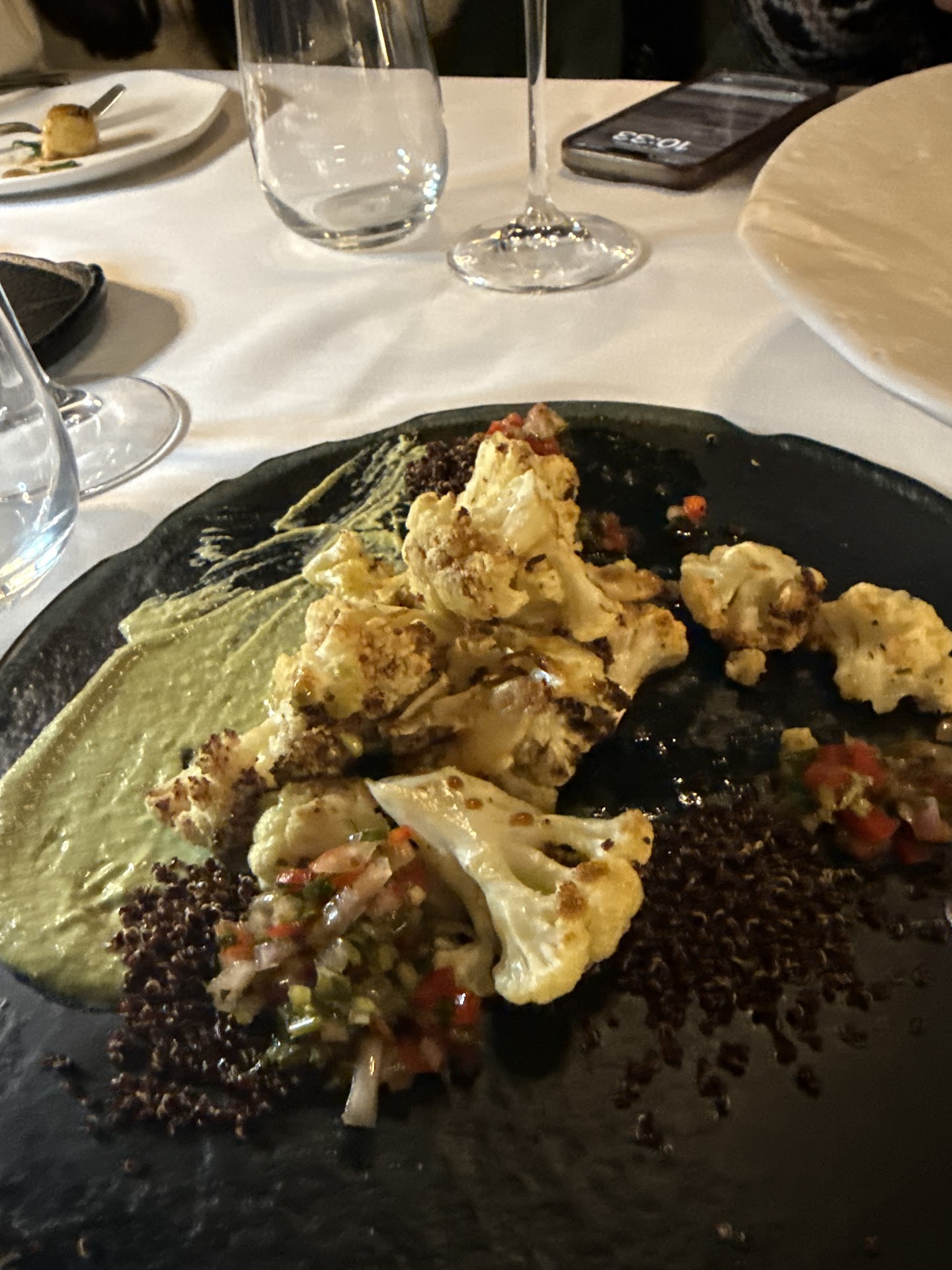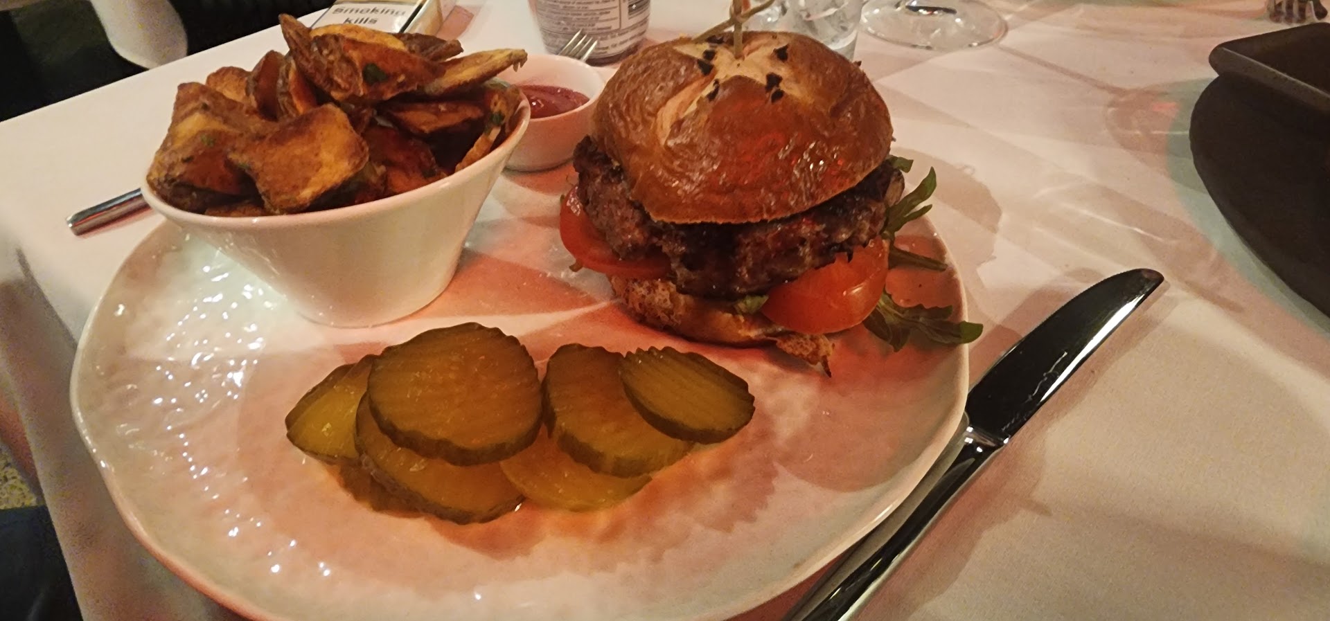 The appetizers were exceptional: creative, delicious, and beautifully presented, with good portions. My French Tartar was particularly creative and genuinely tasty. The atmosphere felt just rightโwarm and casually inviting, yet still elegant and professionally run. Chef Ben's involvement was a real highlight. He came out to meet our table several times and even assisted our waiter (who was great) in taking our order.