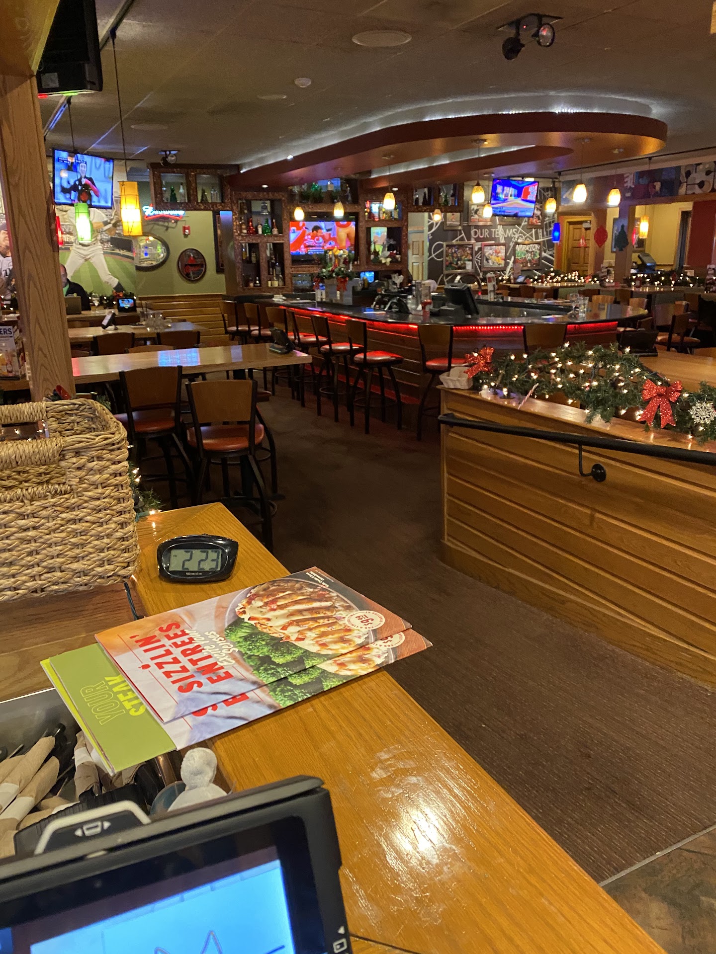 Ā Ā Ā Read moreThis is my husband's and I go to place...I mean we are weekly regulars with a table that practically has our name on it. LOL!! They've done a great job on improving their menu and the food actually taste great. They even have great meal specials if you're on a budget. One of our favorites is the Quesadilla burger. Talk about fla-vor-ful! I highly recommend it. We actually split this burger. Instead of a bun, they use flour tortillas grilled just right. We order our burger medium rare and its topped with pico de gallo, light queso cheese, bacon crumb and shredded lettuce. Best part is no bun, the burger is juicy and you can sub fries for their panko breaded onion rings. We pair this with their BOMB garlic parmesan bone in chicken wings served with celery sticks and the best blue cheese dipping sauce. That chicken is perfectly battered, swimming in garlic butter with sprinkles of parmesan shavings...WHAT! The best waitress is Krista! She's in the bar section and she is very attentive. She already knows what we want. The atmosphere and mood is great, TV's everywhere and they actually have a good variety of background music. It's just comfortable and welcoming. It is way better than Red Robbin across the parking lot. They have great mixed drinks and the night bartender is great and personable too. We end our night with their warm mini walnut brownie bites served with a mini scoop of vanilla ice cream drizzled with fudge. It's the just right portion for less than $3...yes, it's like that!! Oh, and you gotta try their donut holes served hot covered in powdered sugar and a side cup of either chocolate or caramel...