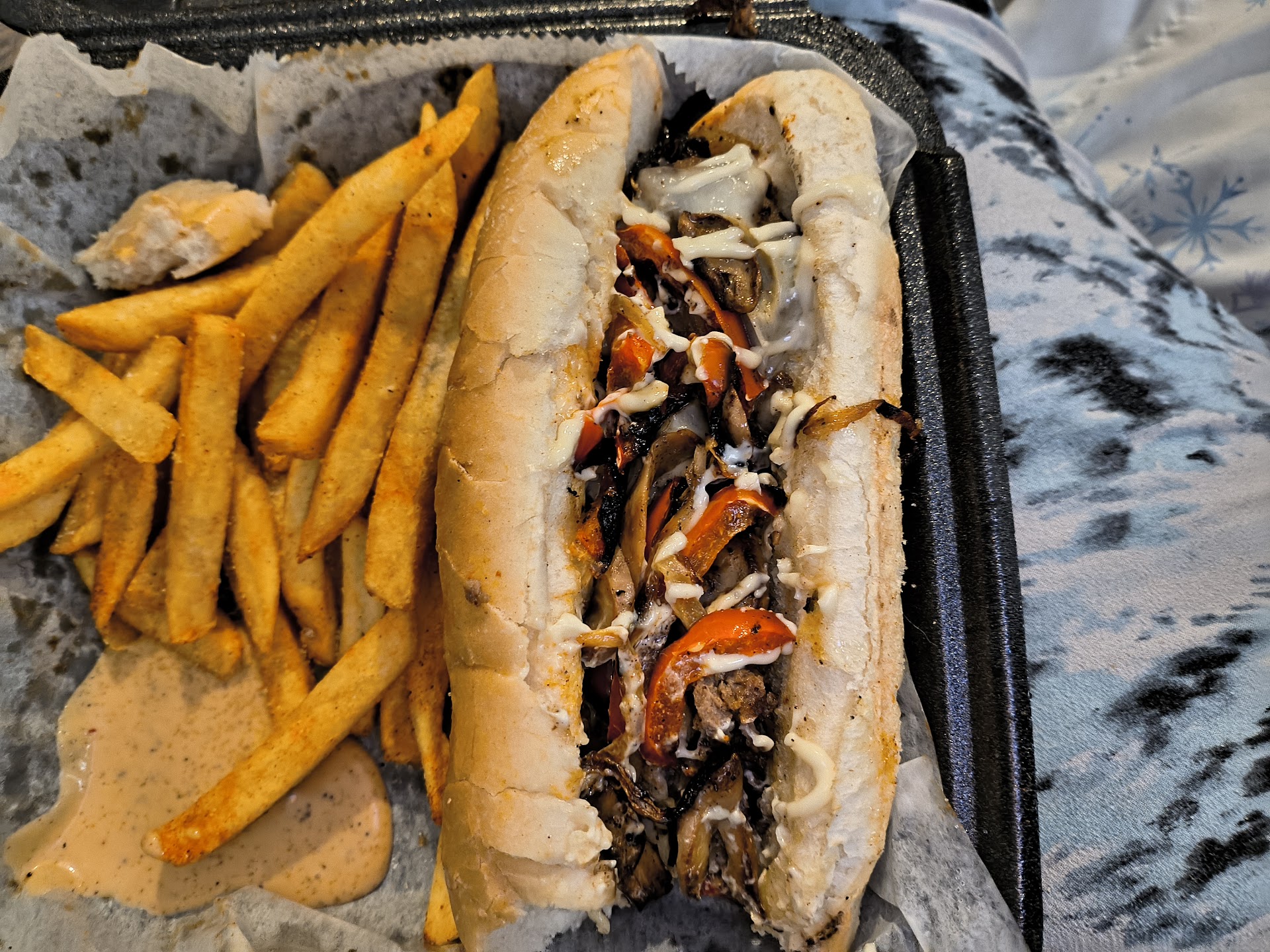 RIP OFF!!!! Food was not worth the price at all... There was no flavor more bread than filling and looks are definitely deceiving when it comes to this food. We ordered through Uber Eats and paid for priority so our food wouldn't be cold and because we don't live but a couple of miles from the restaurant we expected it to be hot but nope our food room temperature at best. The chips are a definite miss, which is probably why they were free, but honestly $50 for 2 phillies with fries and a chicken zinger with no fries isn't worth it especially, when there's barely any meat, veggies, fries, or condiments. And no fries didn't come with the sandwiches we had to buy them separately. SOOOOOO DISAPPOINTING!!!! We were so excited because this place had 5 stars and the photos of the food looked good but this place wasn't at all what the reviews said. I don't understand what all the hype was about, unless it's literally due to customer service because the food is flat, dry, flavorless, and the portions are small,...