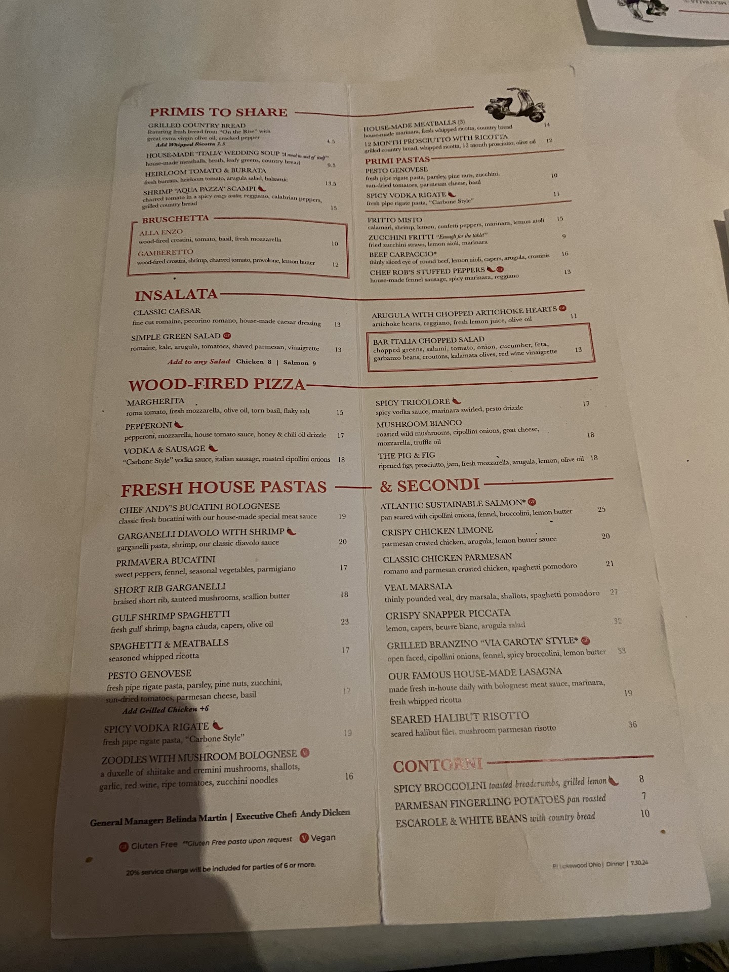 Food, this is my favorite lasagna in Cleveland. I went off course and ordered the Lemon Chicken Primavera priced at $18. I’ve found a new favorite dish. The lady ordered a Garganelli Diavolo with Shrimp priced at $19. It’s a spicy, but definitely high on quality, flavor complexity, and overall taste.
