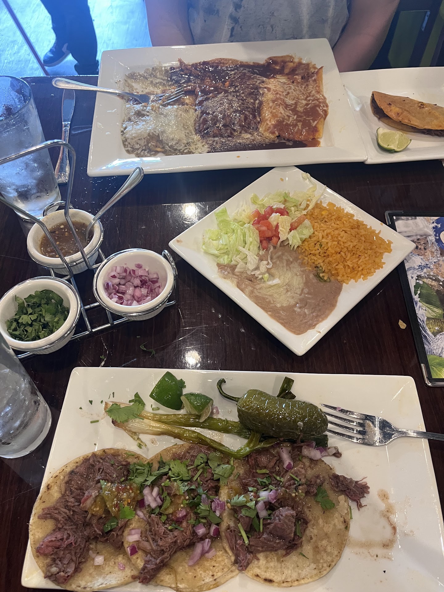 Read moreIf you're looking for some delicious Mexican food packed with flavor, and a top shelf house made margarita to pair it with, this is the place! Also our server was outstanding. We ordered a top shelf margarita which SO good, chicharonnes dip app (you get BIG pieces of freshly fried chicharrones that are literally still crackling when they are served to you!) With a side of fresh made pinto beans topped with a little cheese and also a side of their spicy Pico...SO delicious! We also ordered their cheese dip app which is served with fresh fried tortilla chips and let me tell you...it's amazing 😋 I ordered the enchiladas mexicanas and all 3 flavors were scrumptious. My husband ordered the chicken and pork fajitas and WOW! They actually marinate AND season their meats YUM! Their tortillas are home made which takes it over the top to yummm town! These people do it right...We will be...