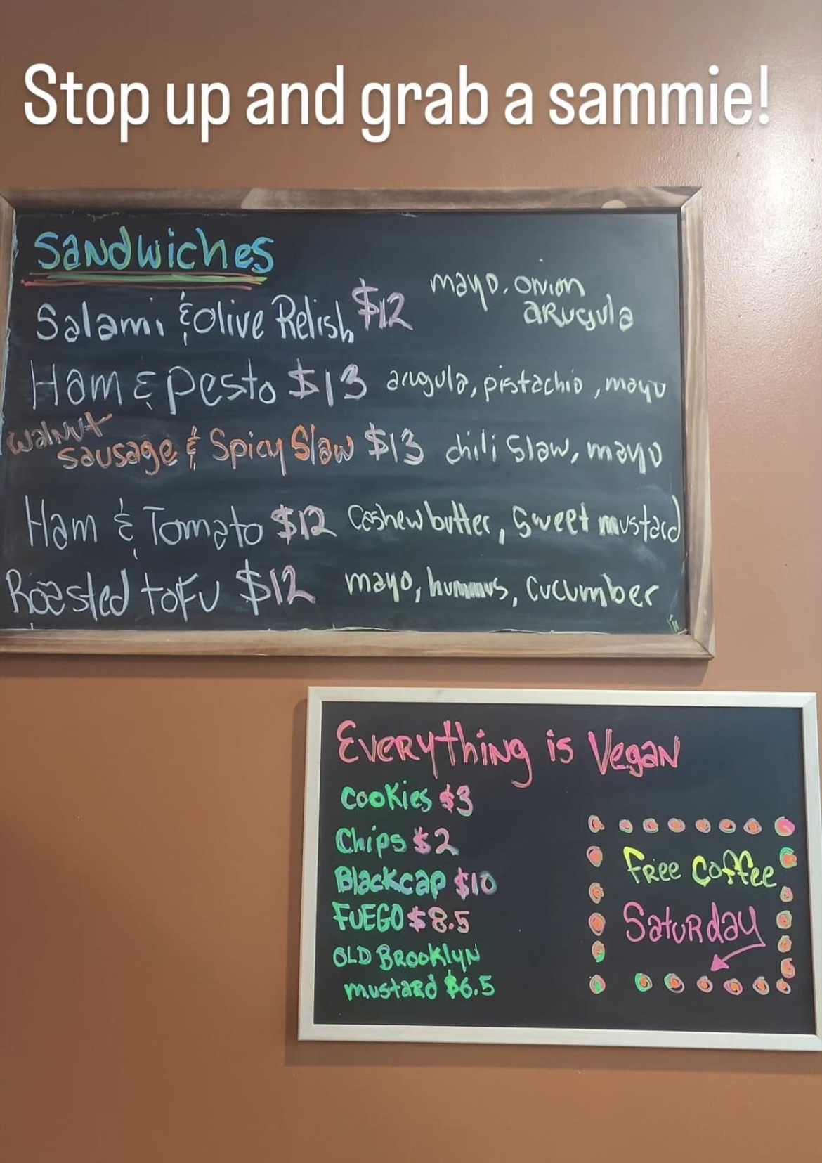 While Iâm not a vegan person, I really enjoy unique cuisine, and always down for some tasty food. Black Market Meats does not disappoint!! The reason there isnât a menu posted is because theyâre always offering different things, and all of their items are homemade with high quality, fresh ingredients. This place is carryout only, and the shop is super cute! Thereâs some retail available such as hot sauces, various other condiments, and chips. Thereâs some stools available so you can sit while they throw your order together. The staff is super friendly and knowledgeable about their products and were able to answer questions.
