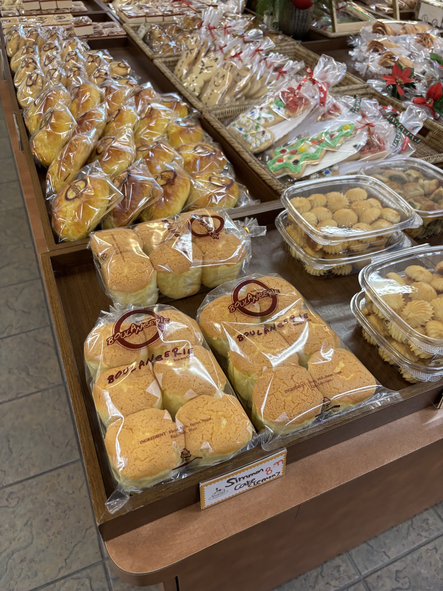 I got a cream filled bread thing but it had only two tiny pieces of strawberry on the outside and the whipped cream was the faux plasticy cream again. Not terrible. Garlic stick taste good. The walnut tapioca bread was a bit dry. Still tasty. Cream cheese filled round bread was good.