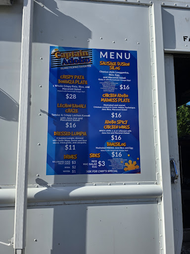 Ā Ā Ā Read moreI have been following this food truck on Instagram since they first opened and have been meaning to try them but due to my boyfriend's schedule, it was hard as they are closed on Sundays. However, he recently got a job that lets him be free on Saturdays now and we were getting a dog groomed in Lakewood so I told him that we are stopping by Captain Adobo. Our friends wanted to tag along as they also needed to get their dog groomed so we dropped off our fur babies then headed straight on over to Captain Adobo's location. As we approached the truck, we were greeted by the cashier and even the chef who were both very friendly and polite. One of the things I love about food trucks is that they have a small menu which means you can tell that quality is key to them.