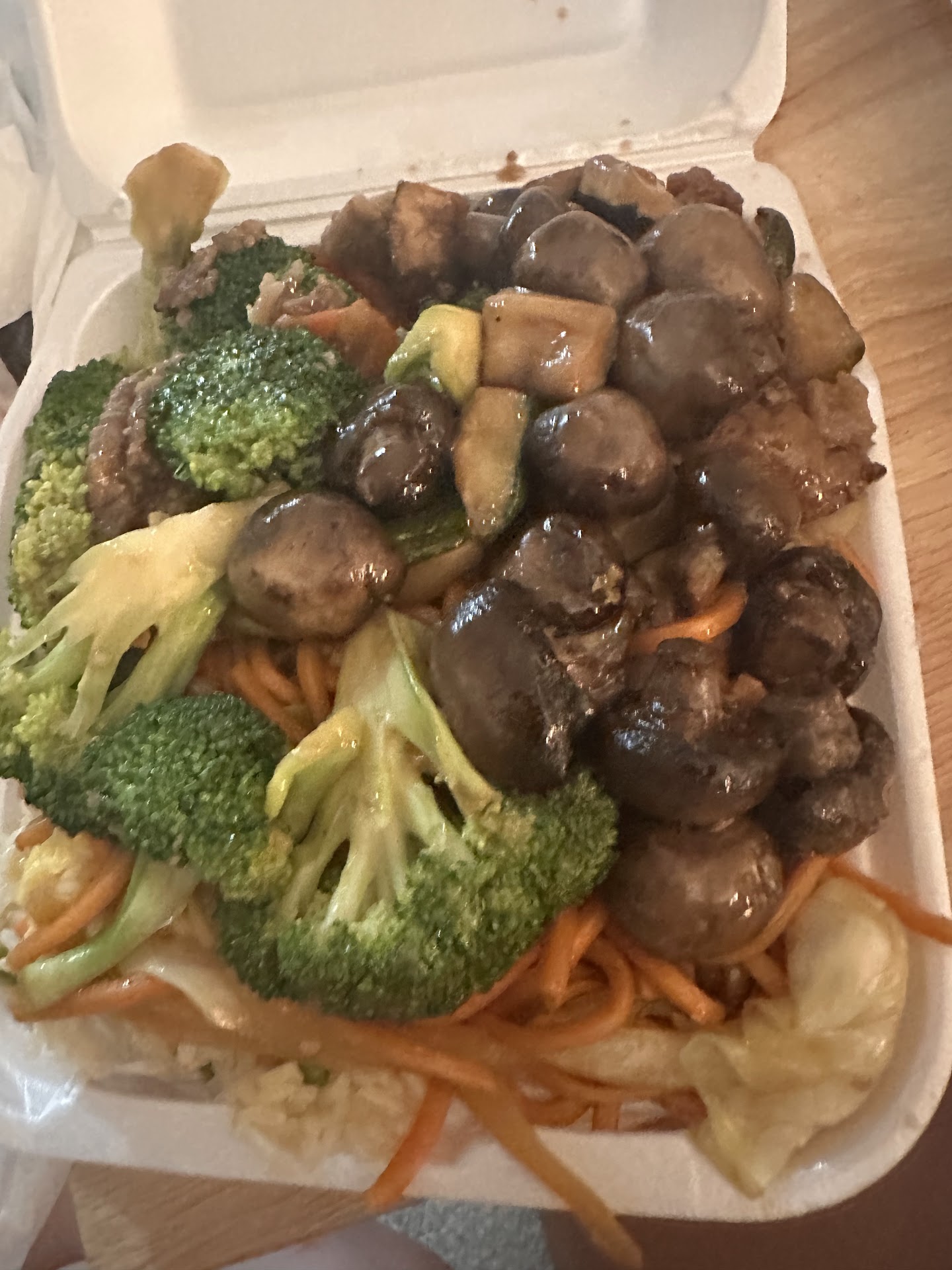 Mushroom chicken - it was like 80% mushrooms with a tiny bit of zuccini and literally 3 tiny pieces of chicken, yummy though, 3/5.