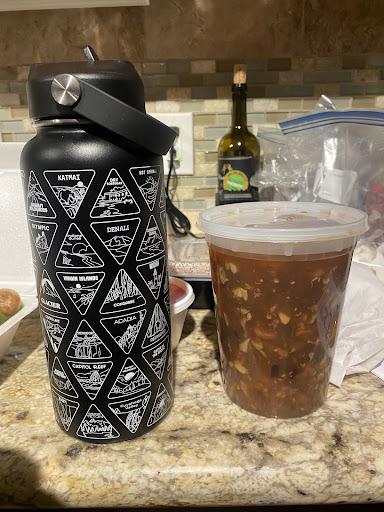 We ordered here for take out for the first time tonight. We really enjoyed our meals! We got the Mongolian beef, sweet and sour pork, sesame chicken, pork fried rice, and the large hot and sour soup (water bottle for size reference of the soup).