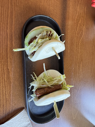 The pork belly buns are amazing. Good mix of veggie and the meat is amazing. The steamed bun is soft but not soggy. The sauce has a bit of sweetness that is great.