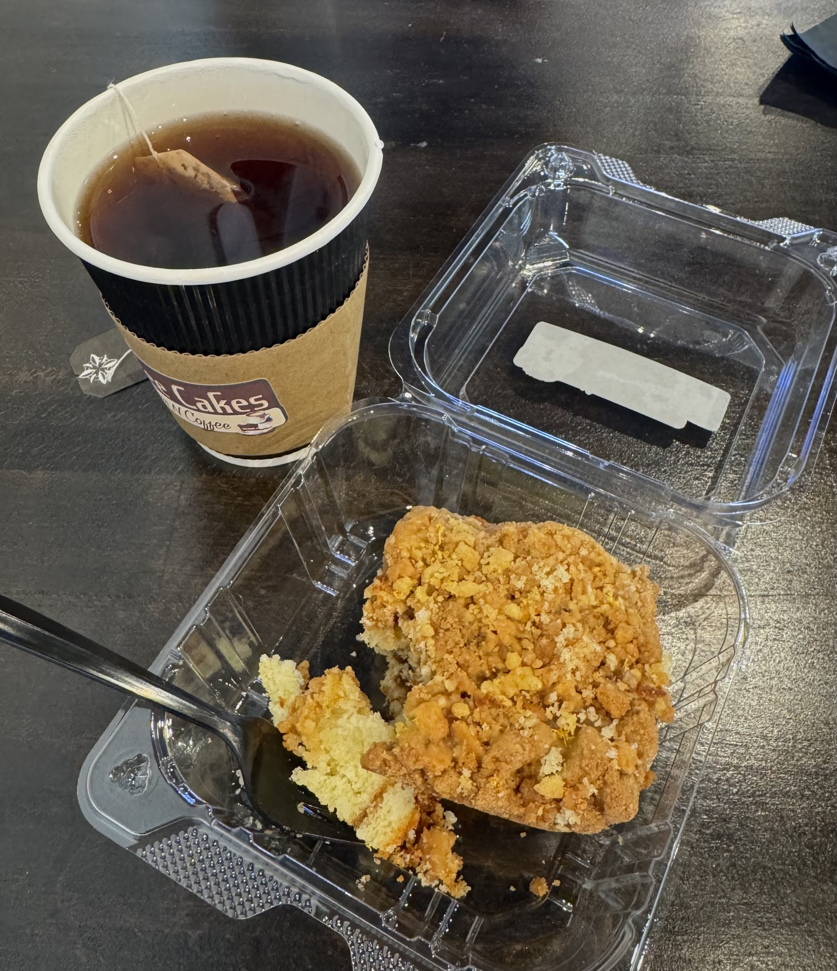 I also thought there would be a variety of cakes, it's actually coffee cakes. They have pastries and 2-3 types of coffee cakes. So probably won't come back. Hopefully they ensure the coffee is served hot in the future and consider the pricing for the coffee, because I could literally get a crème brule latte same size with oat milk for 5.95.