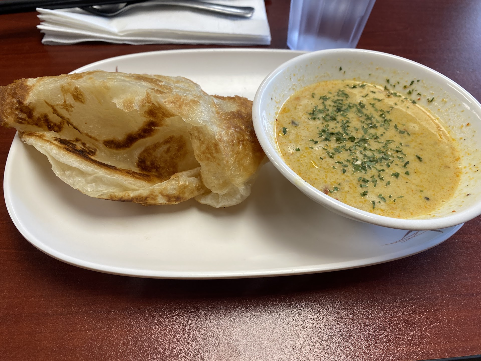 Dang Good Foods is a serious Cleveland hidden gem. It's worth the trip for the roti prata alone. The menu perfectly describes it as a combination of naan and a croissant. It is perfectly flaky and chewy. It's served with a side of curry to dip it in, which was unbelievably flavorful and delicious. One bite and we were sold. This is the same curry served in other dishes on the menu, which I look forward to trying in the future. The deconstructed crab rangoon dip with fried wantons was also delicious.
