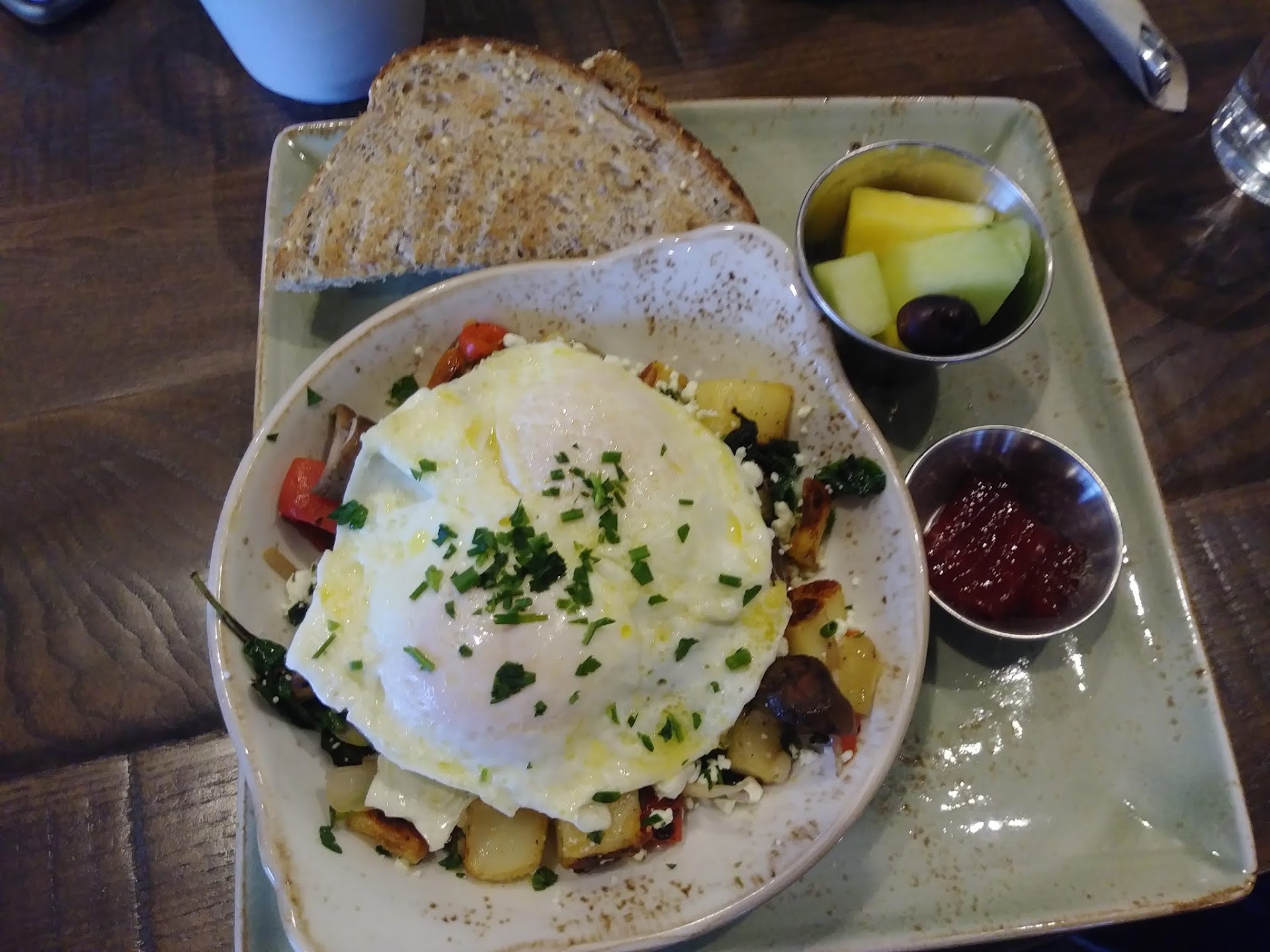 I had a fresh vegie hash with the tasty house potatoes, veggies, eggs and cheeses. I wouldn't call it unique but there weren't any adverse surprises. I was delicious.