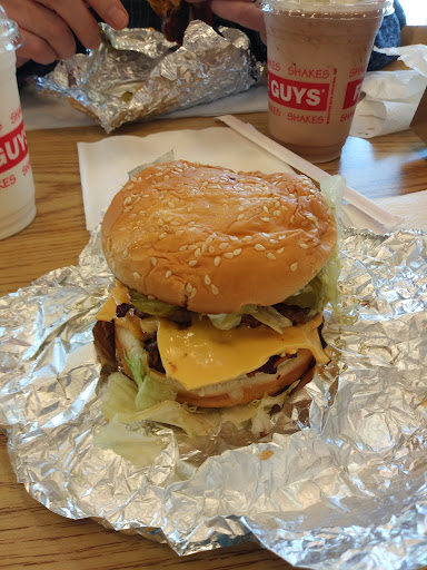 Read moreMy friend kept raving about Five Guys for months. So I decided to go and grab something. I walked and saw how nice and bright it is. Appears clean and spacious. When I got to the counter to order the cashier was polite. I didnt order a drink because a regular drink was almost $3. I ordered a bacon cheeseburger with the works (no charge), that was almost $10 and the fries were almost $5. So for $15 I feel like I've had better for less. The fries were hot, fresh and good. Cooked to perfection. But the burger, was hella basic in its taste. Hamburger meat had no flavor, bacon wasn't crispy, cheese was mostly at the bottom of the burger. And I'll never get the "works" again because all it did was make the buns soggy at the ends. I really wanted to like this place and have a new favorite burger spot. Unfortunately that just isnt the case with Five Guys. Five Guys...