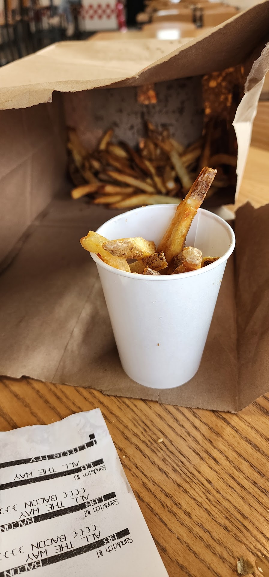 Jennifer has been wanting to try this place, for months. We've never been to Five Guys before, so this was an experience. If all you care about is "taste good", this may be your place. But if you care anything about calories and price...? When I protested the price, they said; Oh but we only use the freshest ingredients. But isn't that what we expect from restaurants?