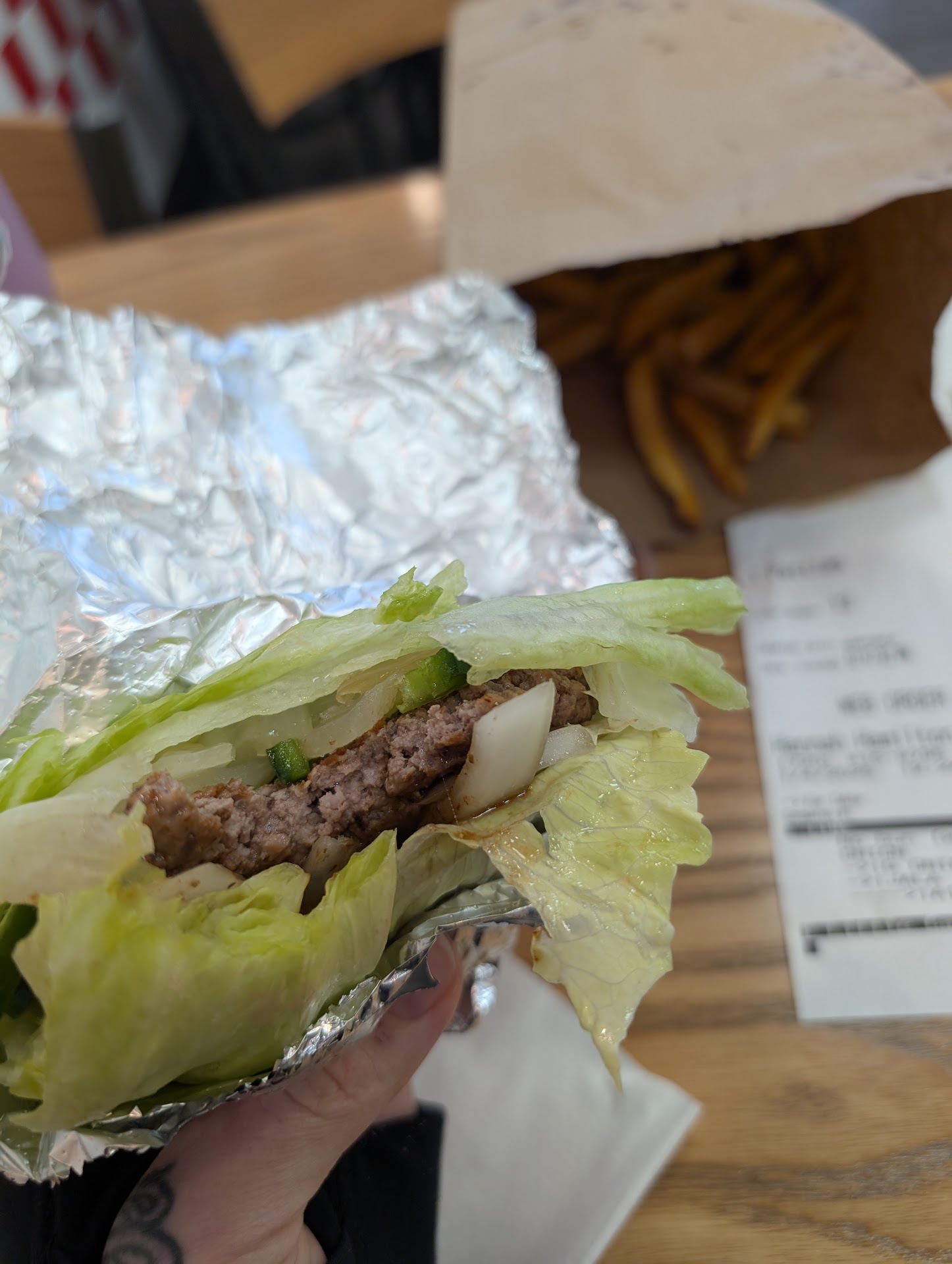 Read moreWent to In and Out and you couldn't even get into the parking lot. Good on them, there is a reason people want their product. I only had 15 min to grab some lunch, so I decided it has been a minute since I have had 5 guys. 2 other clients were inside. I should have known at that point. To my surprise their burgers are $11.. I'm out of time so I order a Patty melt for $8 and a hot dog for $9 before tip. Whatever, im out of time. I ask for Jalapenos, tomato's and grilled onions on the patty melt. I order Onions and mushrooms on the hot dog. I get back to work and non of my request were completed. Not only did I have plain Menu items when my receipt showed the addons but now I had to eat plain very small menu items that I paid over $17 Dollars for.. No wonder there was no one at the restaurant during peak lunch hours. Disappointed with service and literally how much money you have to spend at this place. Save your money and go to In and Out where you can get 2 burgers...