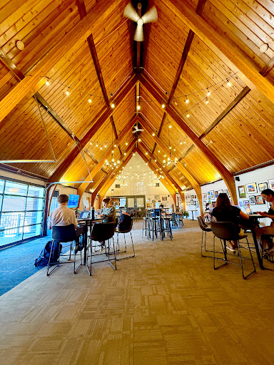 Read moreSpacious coffee shop at The Bridge Church at Bear Creek. Main seating area appears to be a converted worship area --- 3 story high reaching to pointed ceiling. Very nice wood celing and floors. Local art on ways. No explicit Jesus stuff. Between the high ceiling and a garage door size sliding door open to the outside, the ventilation is very good. Tables are widely spaced inside, and there's a half dozen tables and some chairs outside. The wide spacing of tables inside, the fact that most are quite high (more barlike than coffee shop like), and the lighting is not great makes it a somewhat iffy place for pen and paper work. Several outlets, but most tables not near them. I happened to try this place on a summer Saturday morning, and at 9 a series of local young people started performing music -- mostly light instrumental and Christian folky stuff, with the quality you'd expect from this sort of set up. I moved to the most distant table outside to work and it was bearable. There's a small case of pastries and a small breakfasty menu. I had a mediocre pastry and a good breakfast sandwich. Tea is bagged and undistinguished, but there's several kinds. They brew their own chai mixture from English breakfast tea (bags, I assume) and spices. It's a bit too sweet, but better than most...