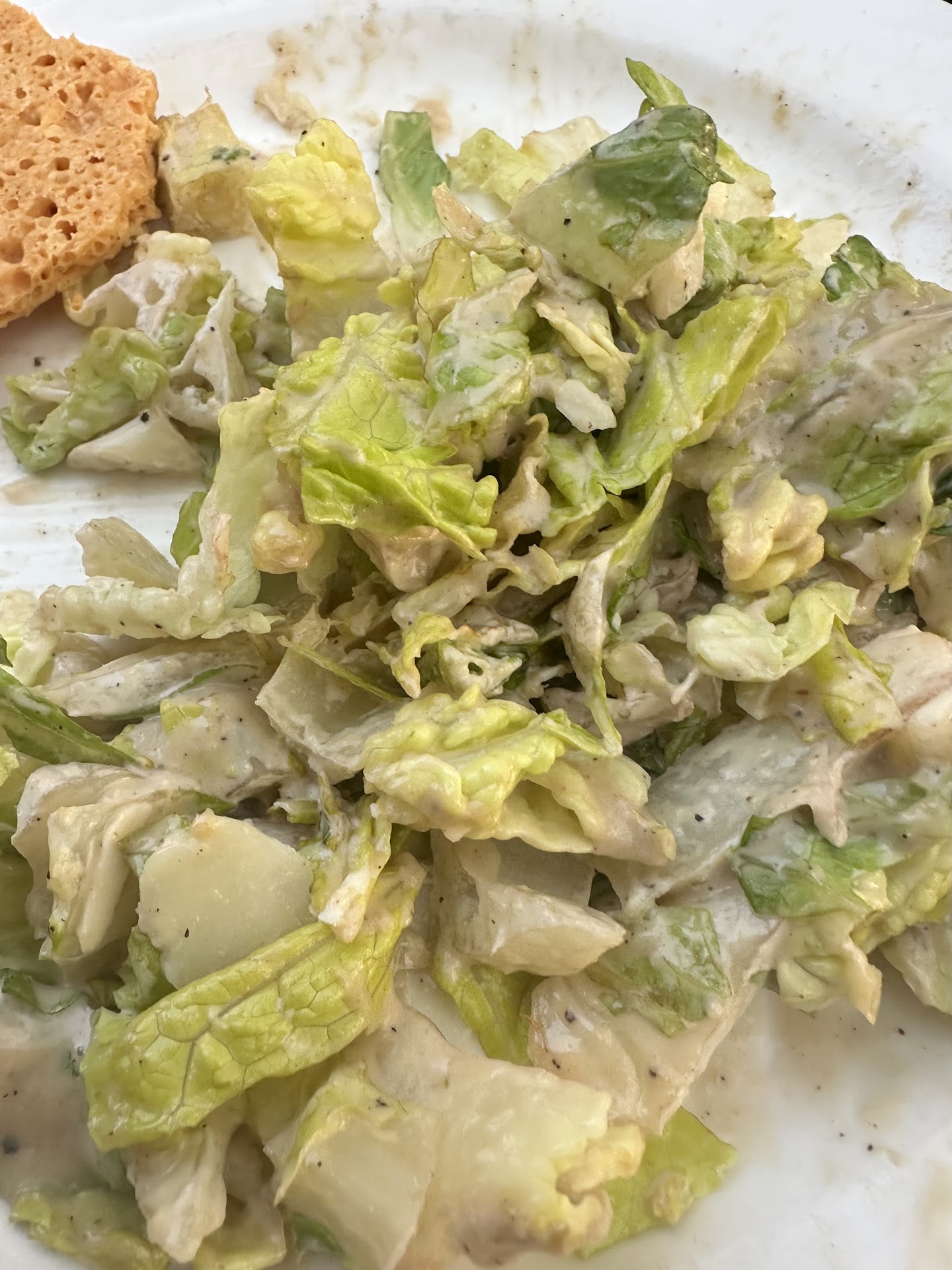 My attempt was so unsatisfactory that I gave up trying to serve myself and sent my beau to make me a salad because he is taller than me and was able to do so without angst. Sadly, I reacted poorly to something that was in the white balsamic dressing that sent me into a coughing fit and caused my throat burn and tighten. In the end, my beau payed $30 for a single chicken tender, two wedges of smoked Gouda, and a couple cubes of cheddar cheese.