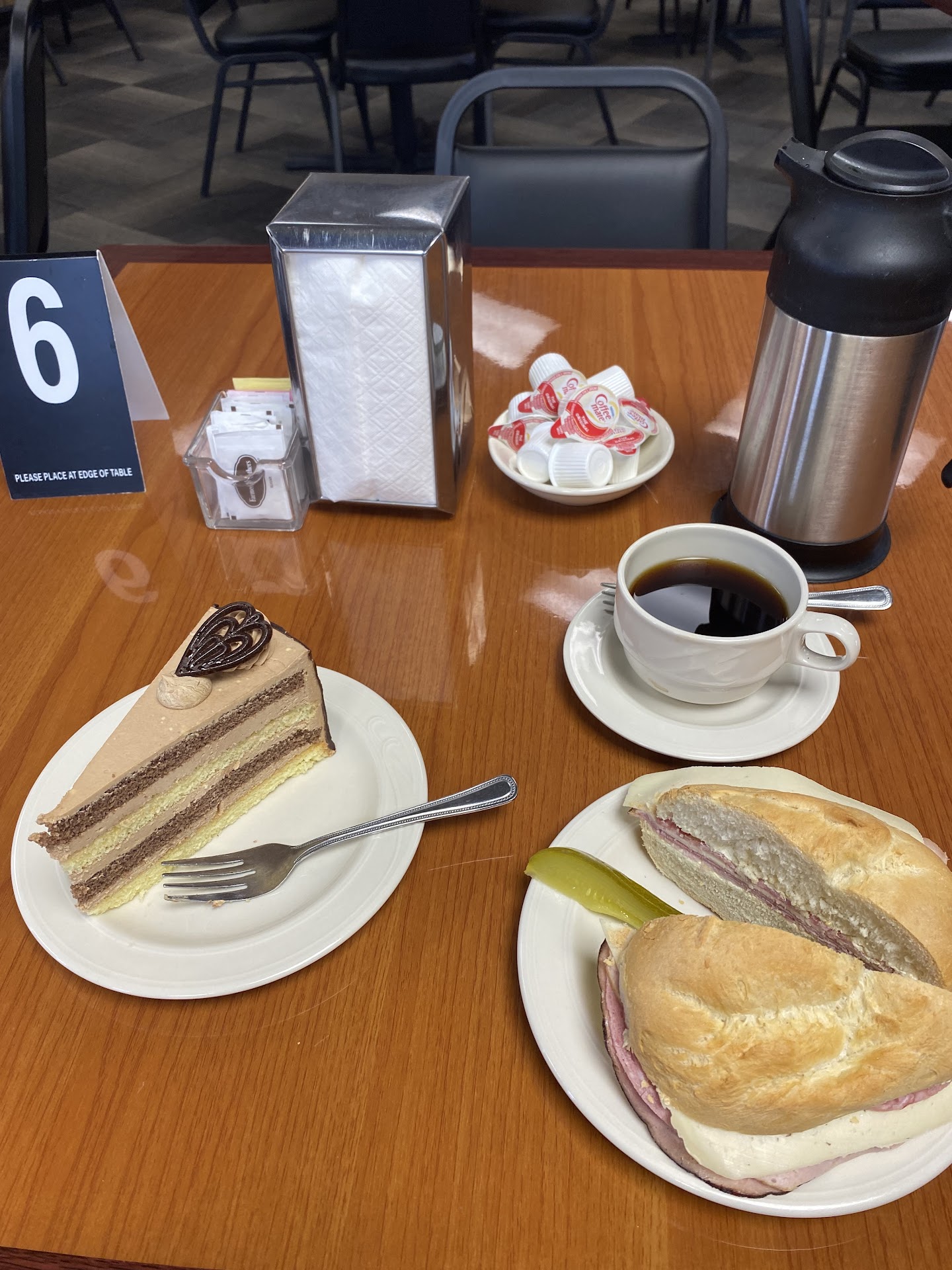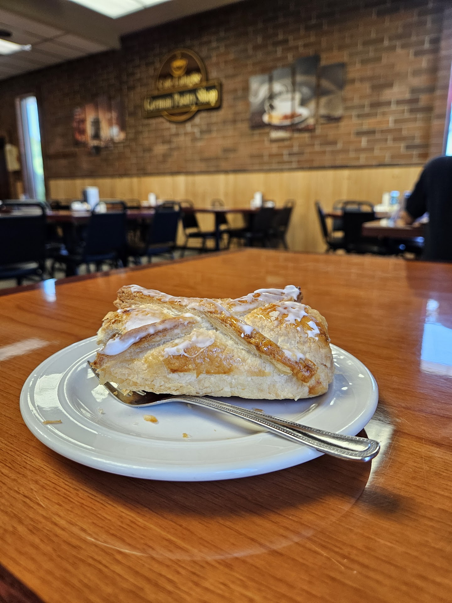 Read moreSure, they have delicious pastries, but you pay a price for it, and I'm not talking just $. They have the strangest way of doing business, which is unnecessarily complicated & confusing. I have never experienced this before & I'm not young & have eaten in many countries including Germany. They charge 2 different prices for eat in & take out. Take out is cheaper, no plate to wash, no bringing it to your table. I told them I wanted to eat some of it there, with my friends, & take the rest home. That apparently wasn't possible, so I had to wait until I was leaving for them to hand me my pastry. We also did NOT understand that the 2 German businesses which are in the same building and have the same entrance have different owners! I saw the sign saying no outside food, which I assumed meant from Safeway or something. I proceeded to bring my bag of drinks from the deli (the other store) to share with my friends at the bakery side. No No! 2 of my friends use canes and needed to sit down as the line was slow. That's another No No! Can't sit at a table until you pay & then THEY will seat you when they get to you. The last of our No Nos! was when my friend saw the waitress serving someone else coffee & asked if she could have some. She waited & waited but it didn't come. She finally asked about it & there was confusion about they didn't have her order & the waitress went back to confirm with her coworkers. Then an older German woman came out and loudly, bending over the table towards my friend, proclaimed "You did not pay! You did pay. There is no order!. We clearly & obviously were new to the place, as they should have recognized and were doing our best. We'd been texting about going here, (to both businesses) for quite some time. We left with a sour taste in our mouths & I dare say none of us will return. I gave 2* instead of 1 as some of it may have been due to the language barrier,...