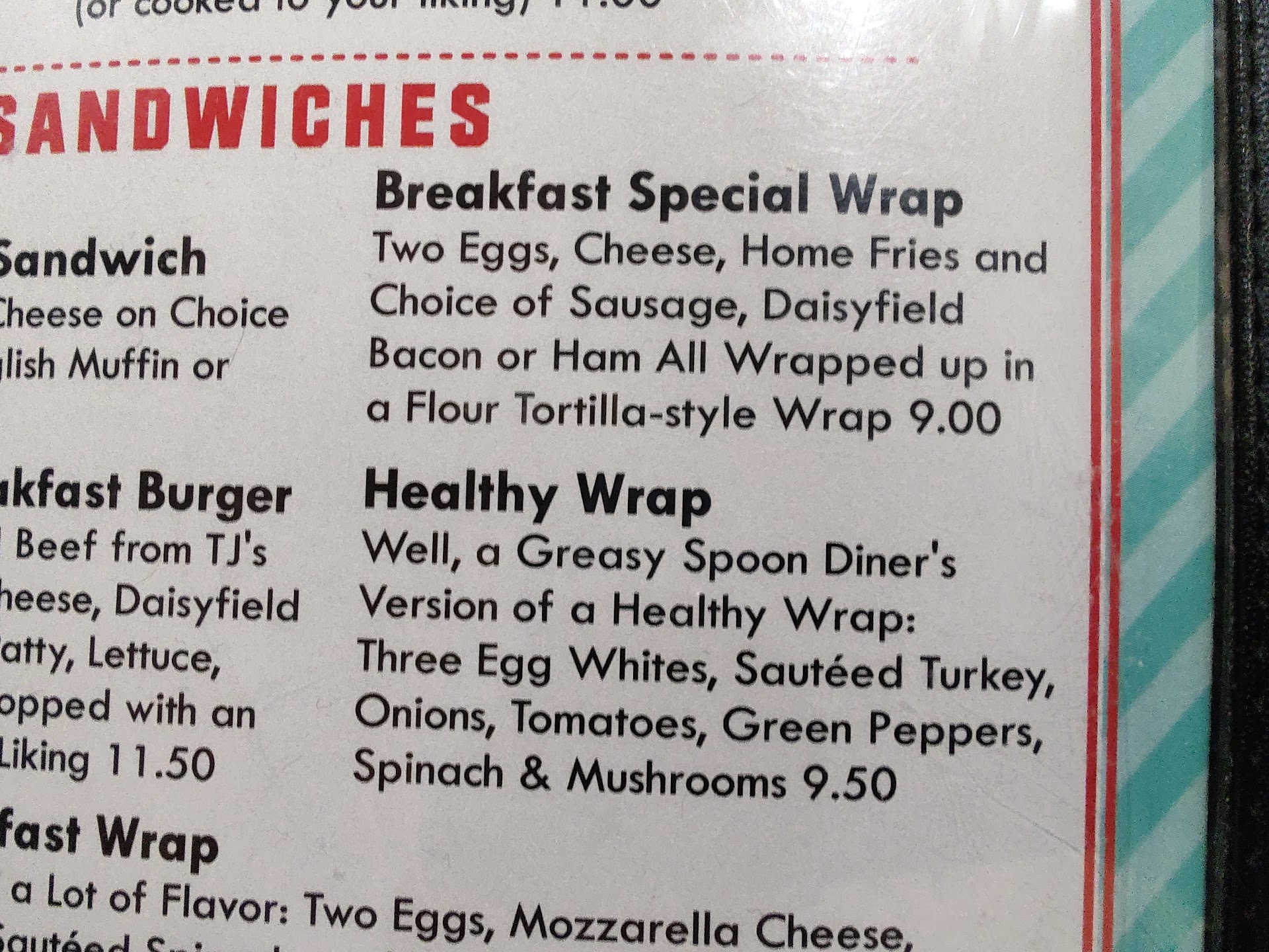 B. The server told my wife that the kitchen could not make scrambled eggs because the eggs were cooked on a flat top. (why a flat top grill means you can not scramble eggs in a bowl is beyond my ability to comprehend).