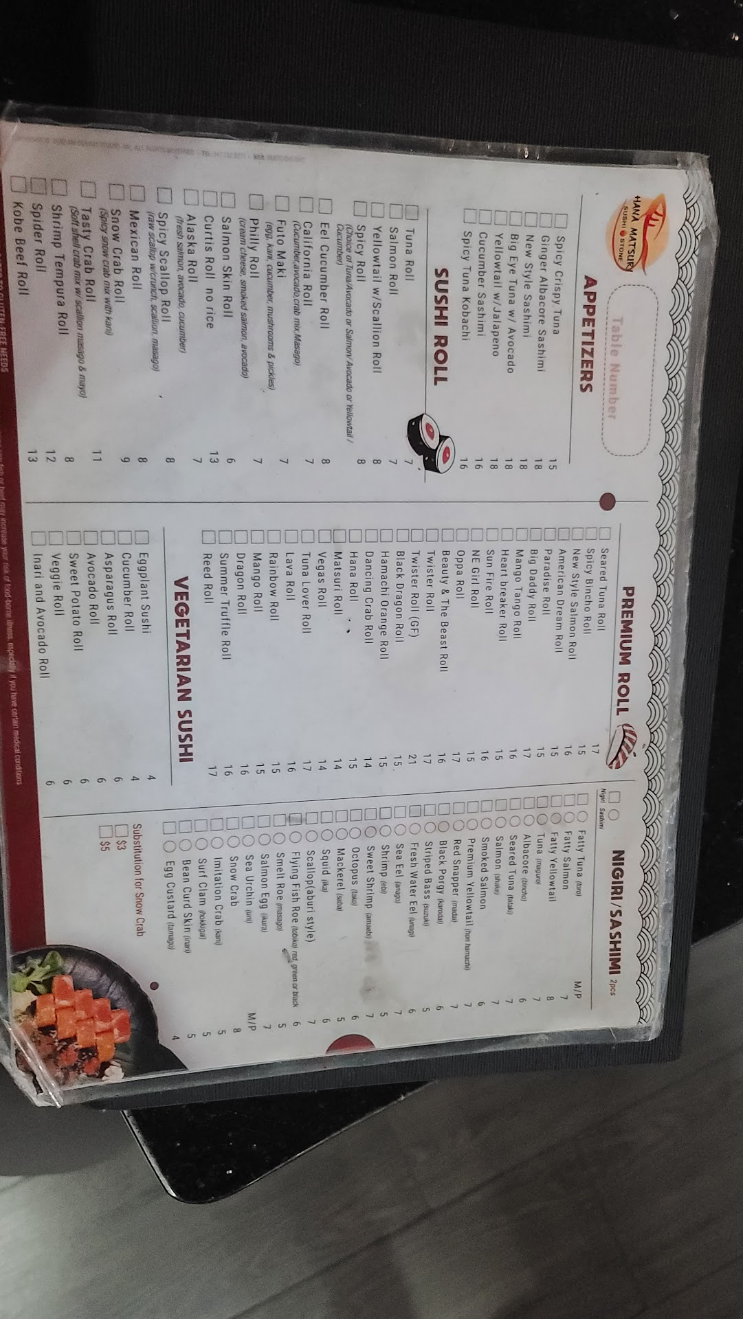 When he was at the host stand, he started filling out one of their menus that is the âdry eraseâ type of menu where you mark which sushi you want.