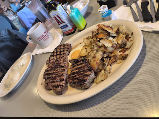 Read moreWe were recommended this place by a work partner who stated they're friends with the restaurant owner. I really don't understand the rave reviews for this restaurant.Are they paying people for reviews that's completely rhetorical. I walked in for the first time yesterday and nothing about this place was friendly not even the waitress. As soon as we interacted with the waitress we knew what kind of service it was going to be. We would have left but my partner was hungry. He got the steak and eggs. He said the steaks was alright the so-called hash browns if you could even call them that we're not but the pancakes were actually good everything else was less than mid. The coffee was gross and had a weird taste to it. I didn't end up drinking it the water was sus, I was afraid to drink it. I got the tator tots I mean you can't mess up Frozen tots right. Anyway my partner ate some I refuse to eat at a place that serves crappy Service. The waitress was not attentive and when she asked my partner if he wanted more coffee he said yes but then she never brought him more coffee. The waitress did serve plenty of attitude though if that counts for anything that matters. She was friendly to other customers while stone faced with us. This place gives Yanna's cringe vibes without the smell. I even saw a couple of waitress that used to work there. I have divested my dollar from that place for the same reasons. As a Colorado Native this was my first and last time at this outdated hole in the wall. Everything is a template of the other nothing special nothing new all mid-level food and service quality. But hey on a good note if you don't care what you put in your body and you want to feel like crap after you eat the food, go to hits...
